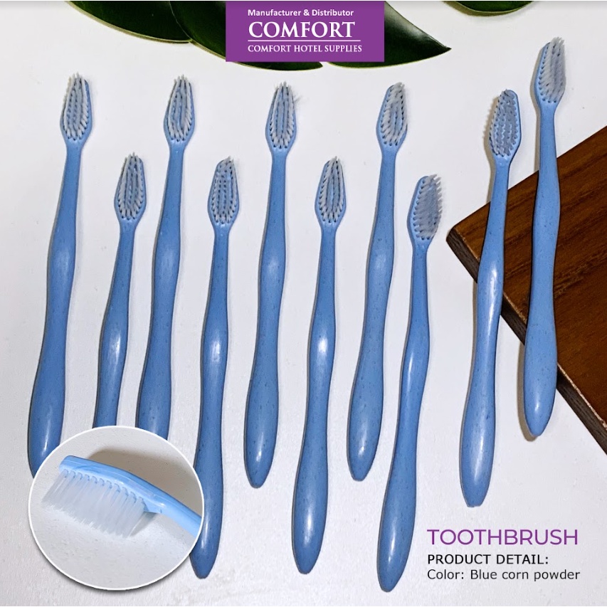 20pcs Biodegradable Toothbrush Blue for Resort, Hotel and Transient House - Comfort Hotel Supplies