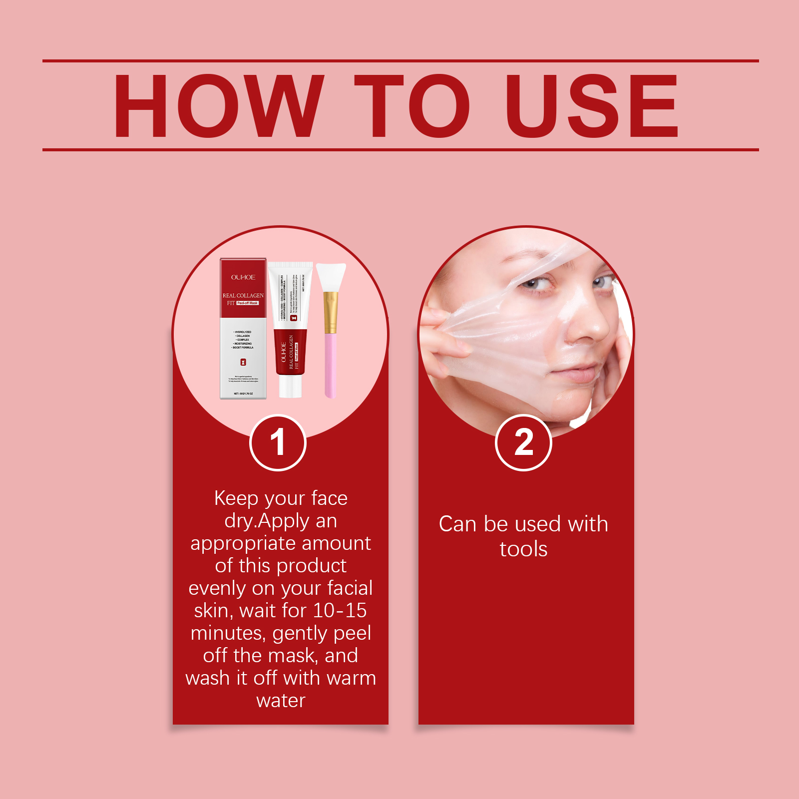 Ouhoe Real Collagen Fit Peel Off Mask Nourishing Moisturizing Firming Skin Care Soft Elasticity Naturally Luxurious Mask Includes Tool