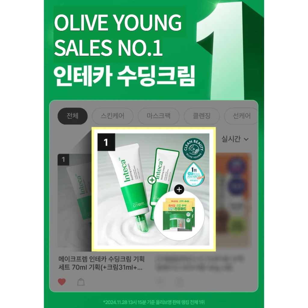 makep:rem makeprem Inteca Soothing Cream Special Set (50mL+31mL) -OLIVE YOUNG BEST! shipping from korea