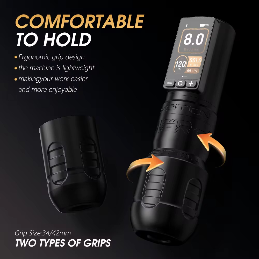 Wireless Tattoo Machine 4.0-4.5mm Stroke Brushless Motor Pen Professional 2400mAh Battery Grip 34-42mm