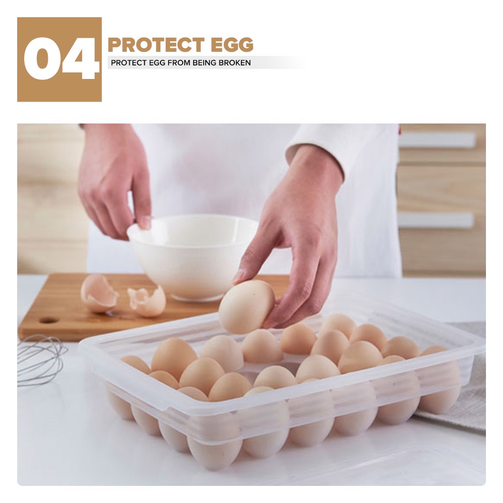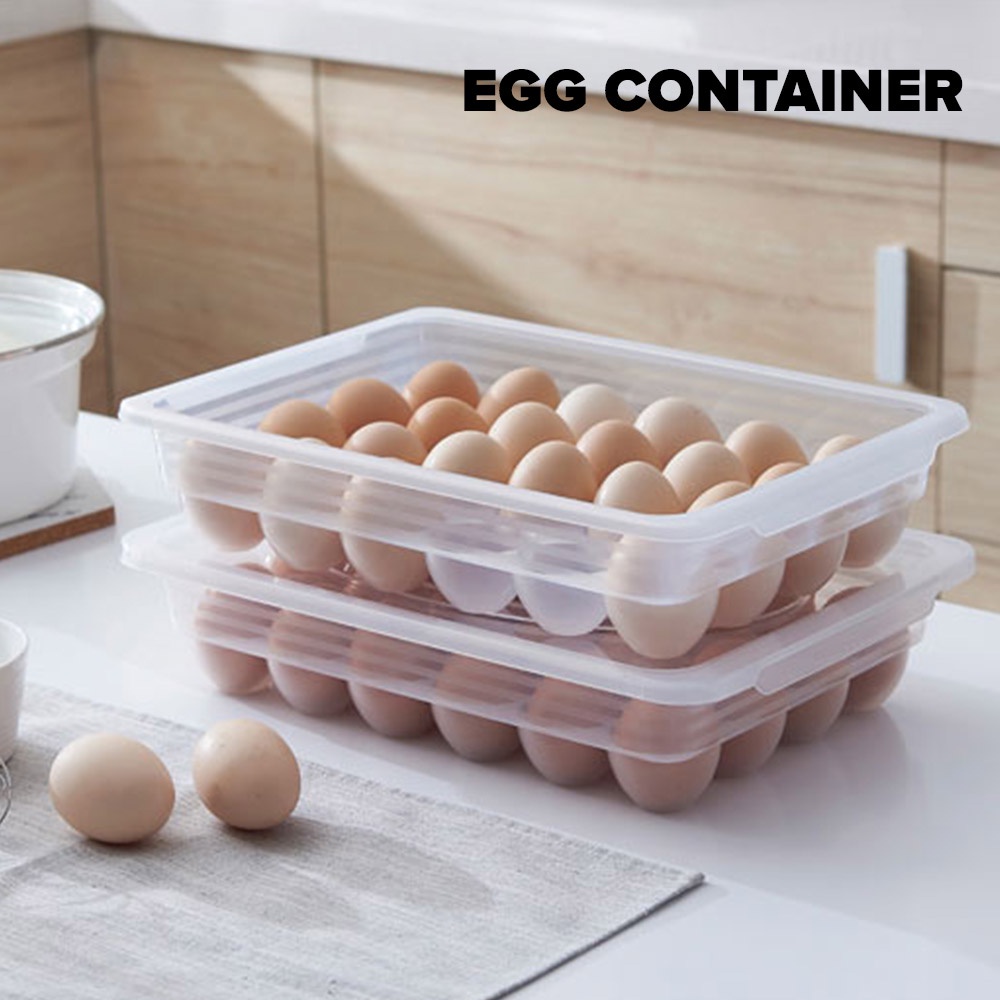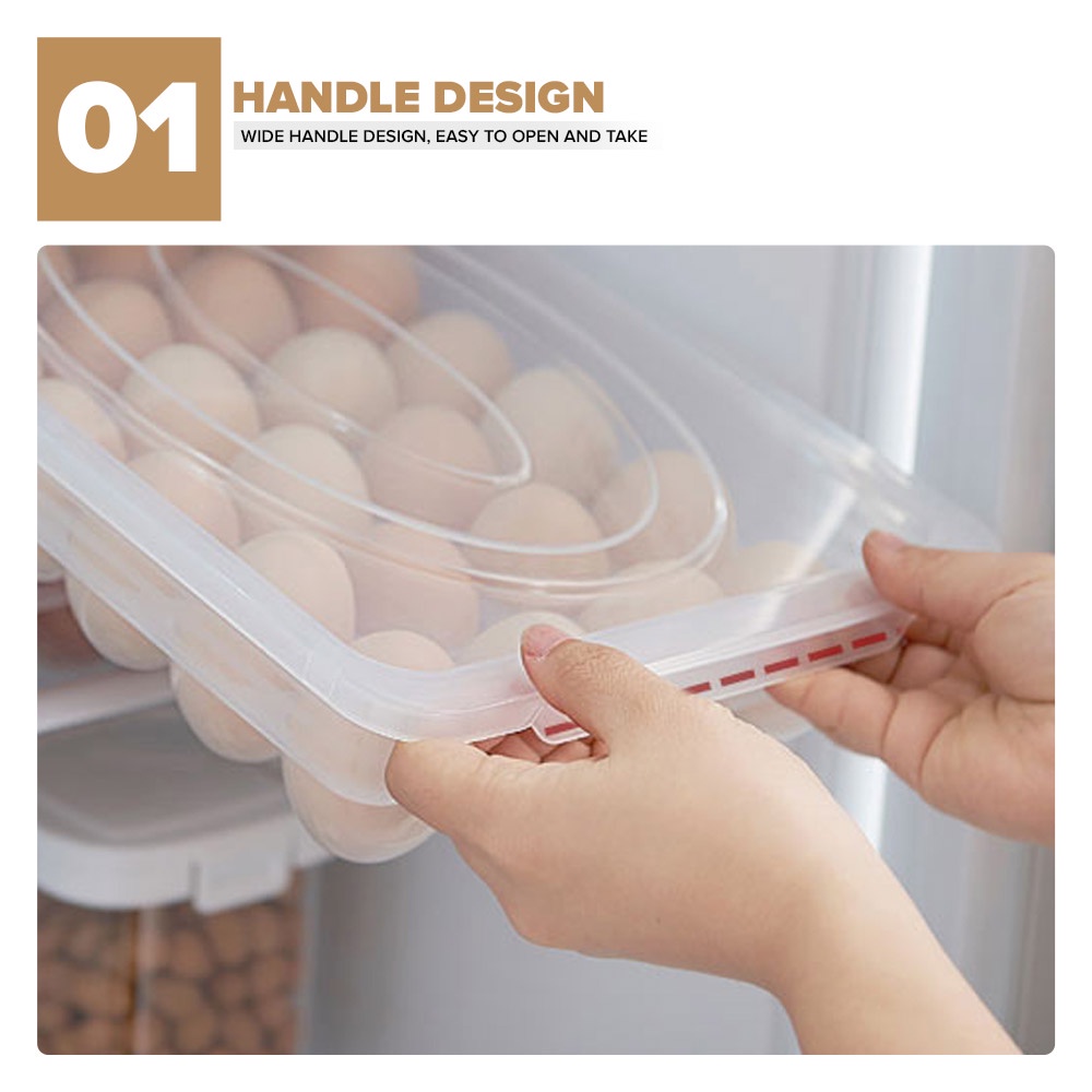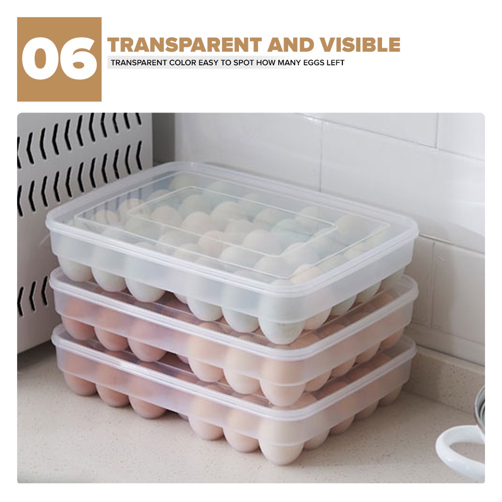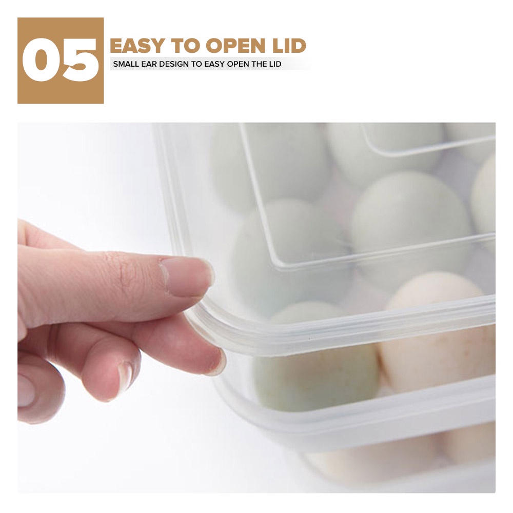 34 Grid Egg Storage Tray Plastic Space Saver Refrigerator Food Organizer Box Container Lid