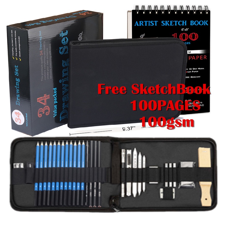 34pcs Sketch Pencil Set Artist Craft Professional drawing Kit Graffiti Portable Student Art Supplies