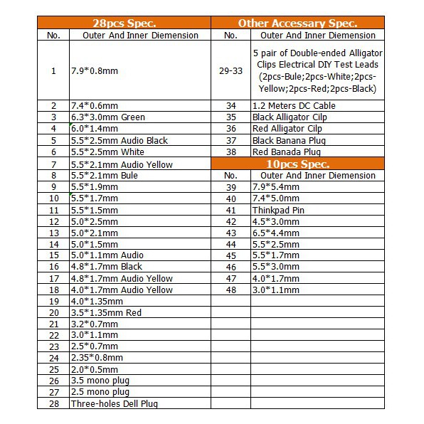 34pcs Universal Power Adapter AC DC Jack Charger Connector Plug for Laptop Notebook DC 5.5*2.1/5.5*2.5 Female to Multi-type Male Jack Conversion plug