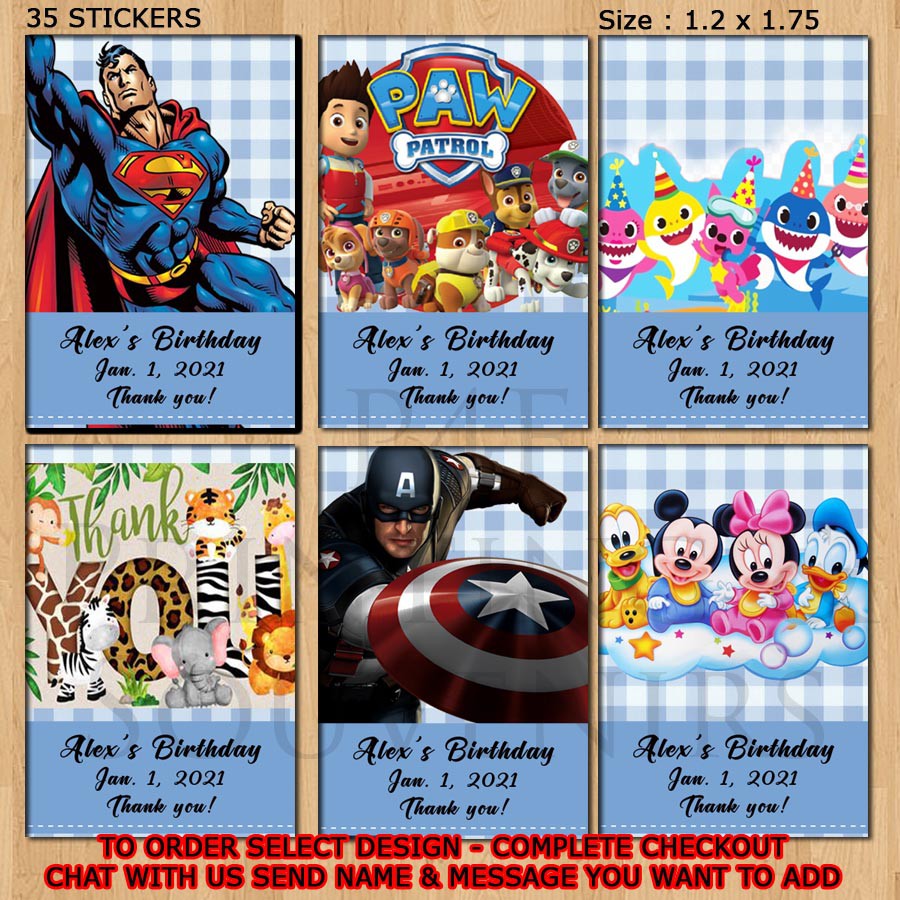 35 Pcs Personalized Sticker 1.2" x 1.75" for Bottle Souvenir Party Stickers Birthday Baptism