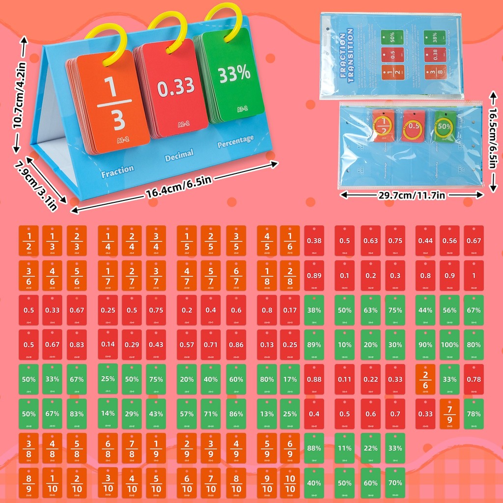 35 Sheets Math Fractions 1-12 Flash Cards,Graphically Illustrated Simplification Math Flashcards,Educational Learning Math Toys for Kid Brain Training Homeschool Teaching Tool