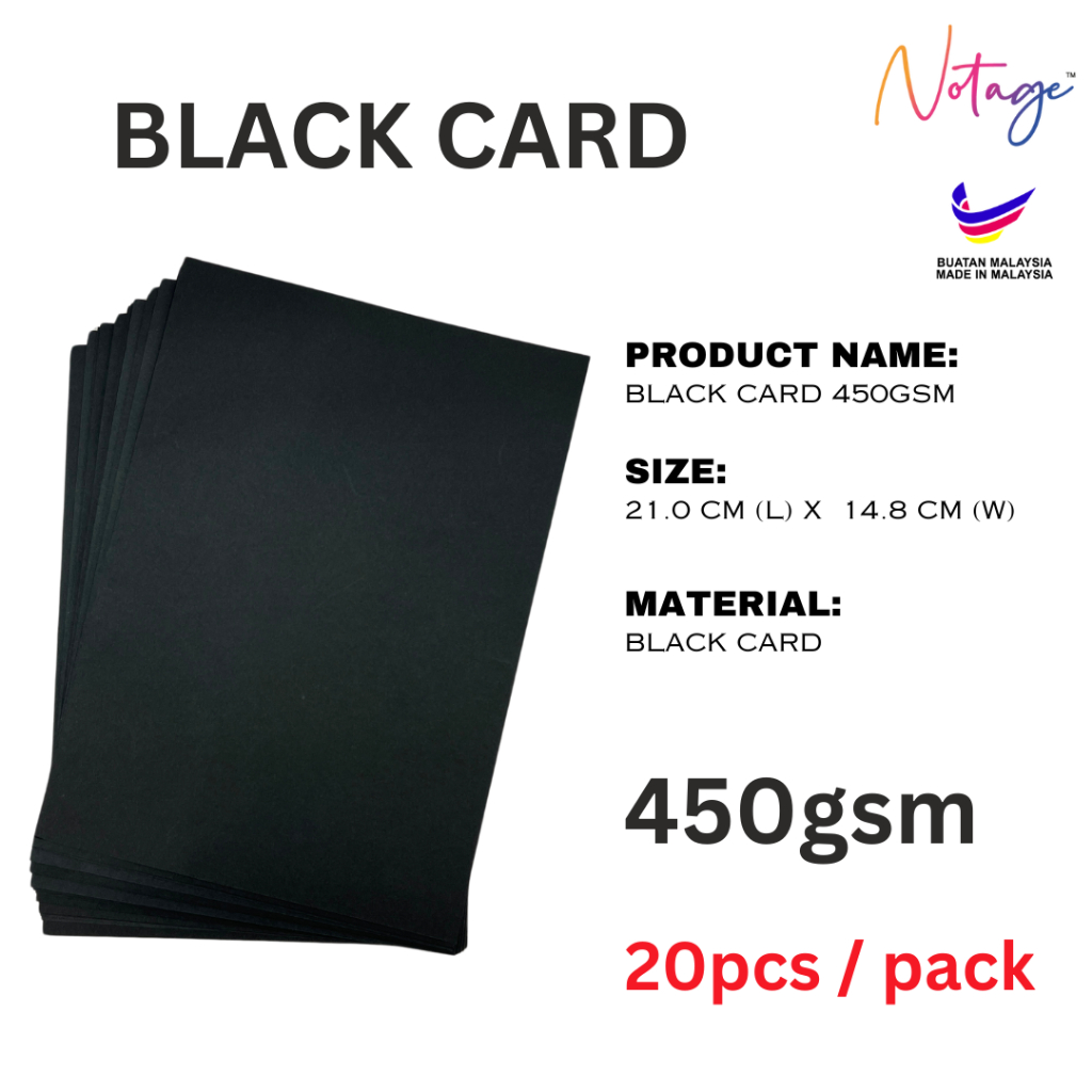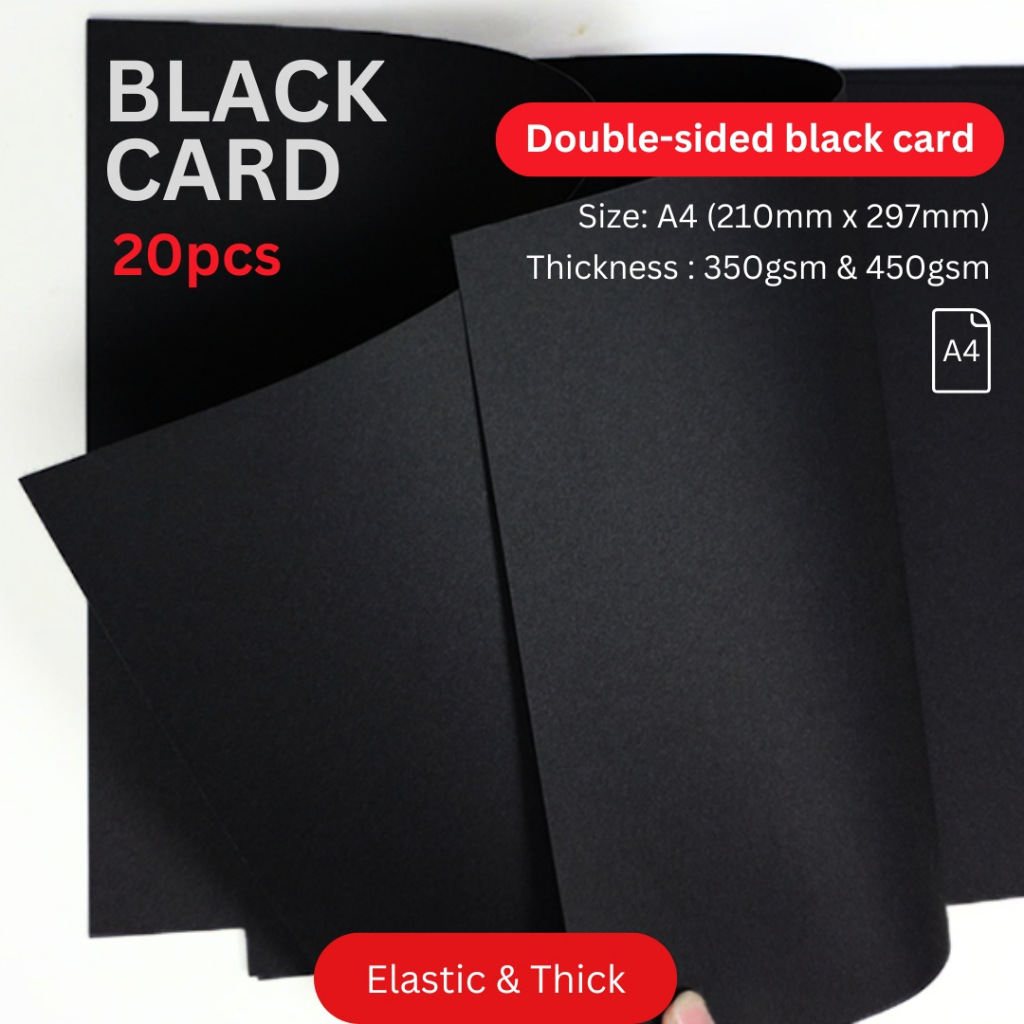 350/450GSM A4 Size Black Card / Kad Hitam (20'S) Art Paper