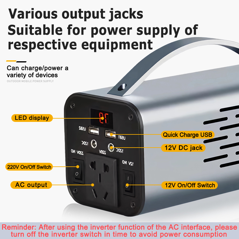 350W/1090600mAh Power Station 220V Multi-Function Portable Power Bank Big Capacity Solar Generator