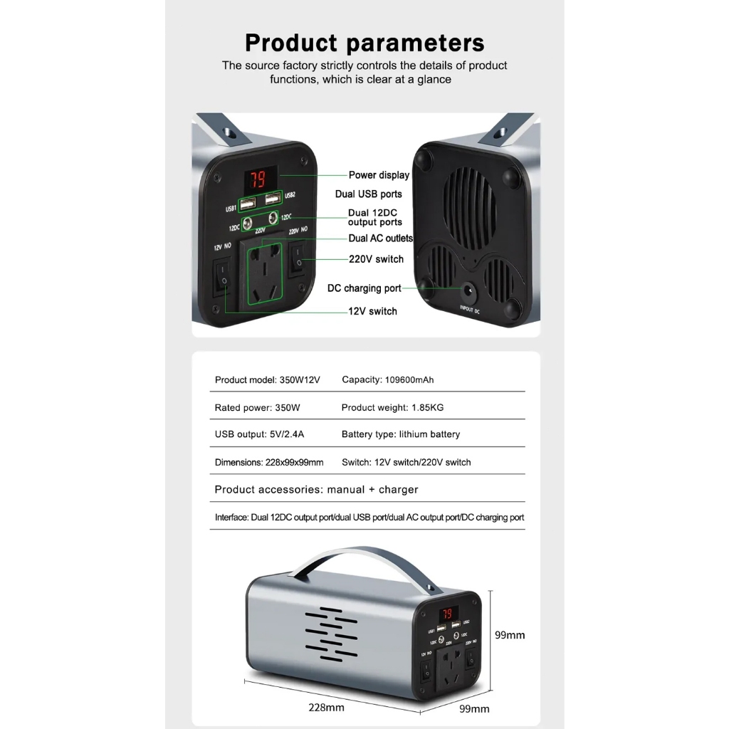 350W/220V Power Station 109600mAh Portable Big Capacity Power Station Multi-Function Solar Generator