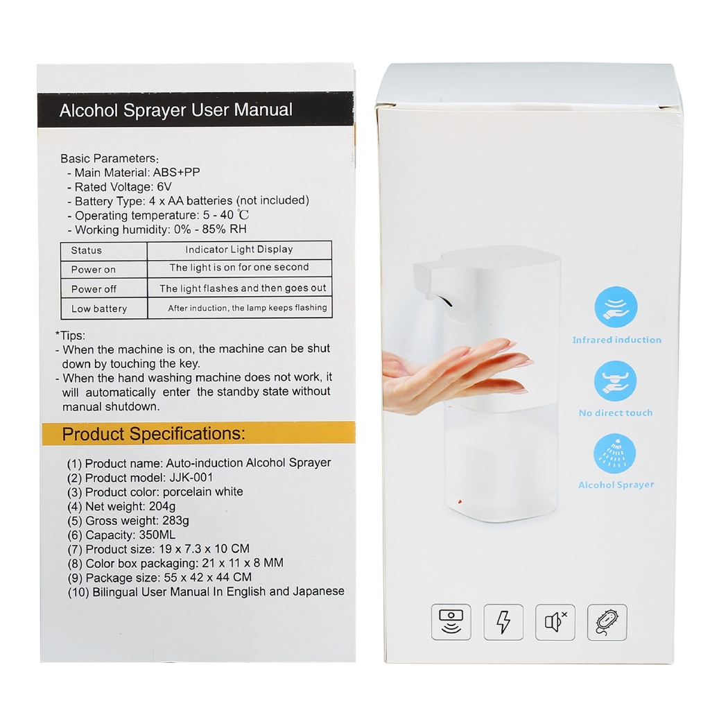 350mL Automatic Soap Dispenser Spray Type Touchless Soap Dispensers with IR Sensor Sanitizer 75% Alcohol Dispenser for Home Commercial Use