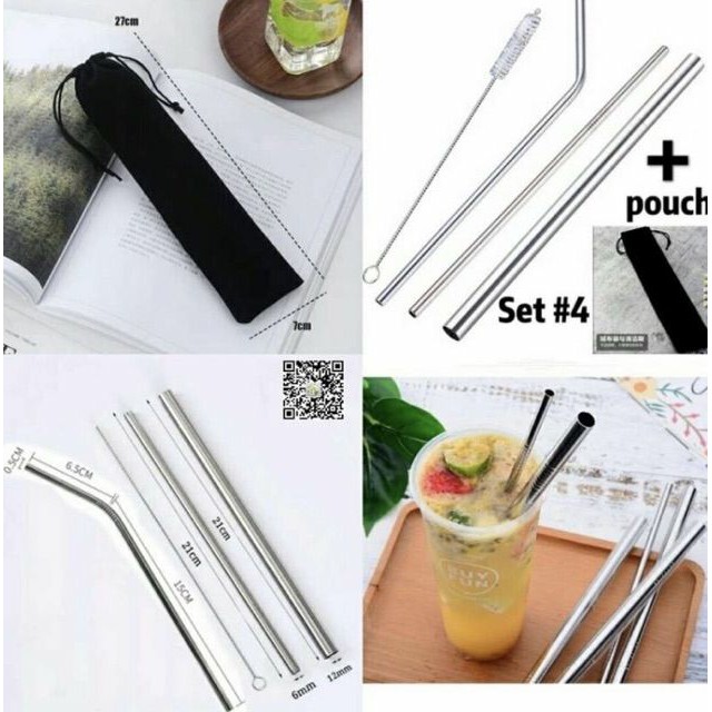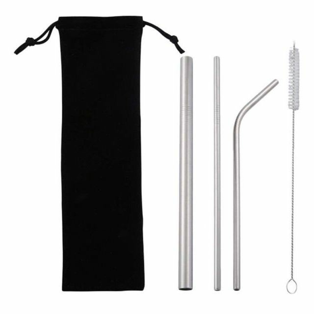Ecoplanet#4PCS Set Stainless Steel Straw Drinking Straws Set