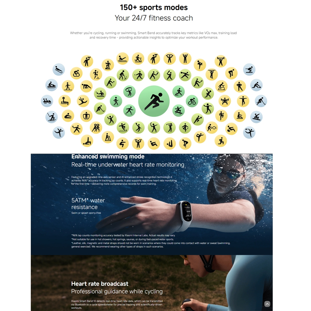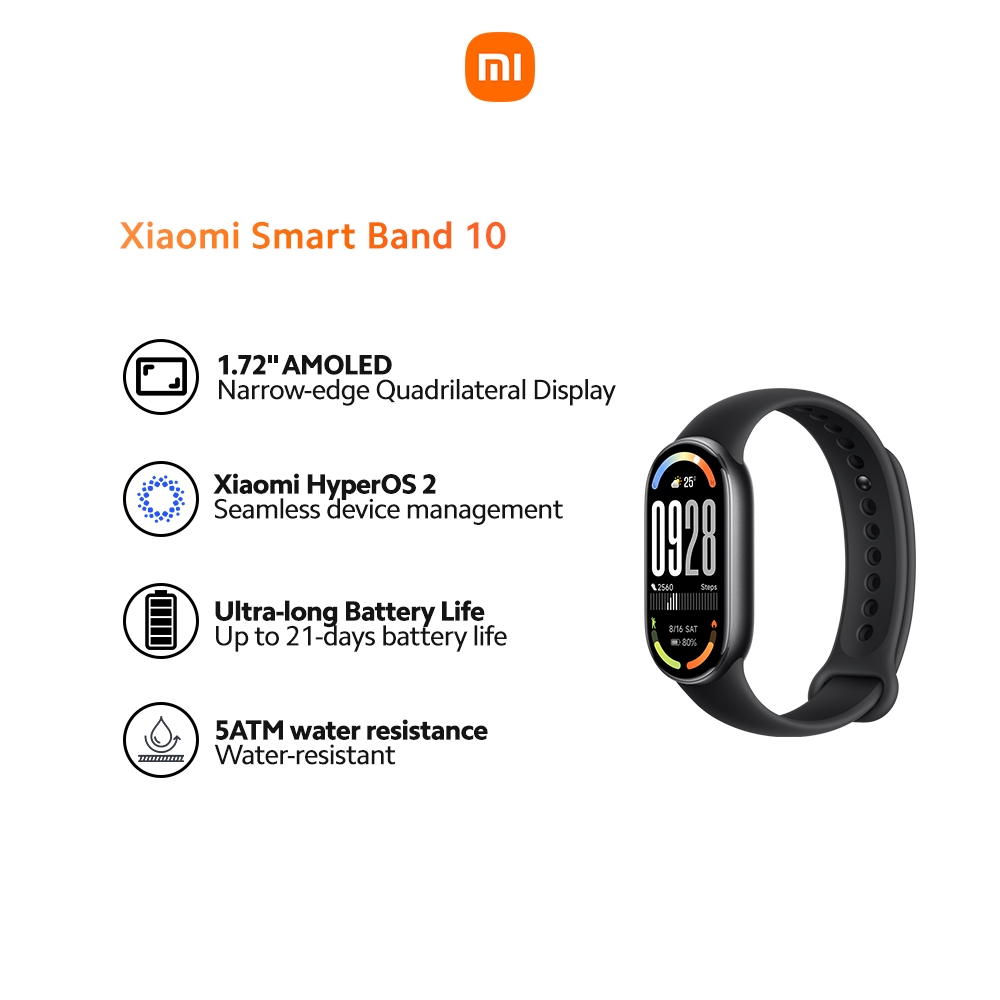Xiaomi Smart Band 10 1.72-inch AMOLED Touch Display 5ATM Water Resistance