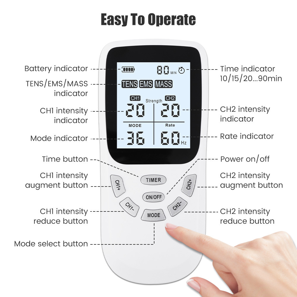 36 Modes Digital TENS Machine EMS Massager Electric Pulse Muscle Stimulator for Back Neck Electrode Massage Pads
