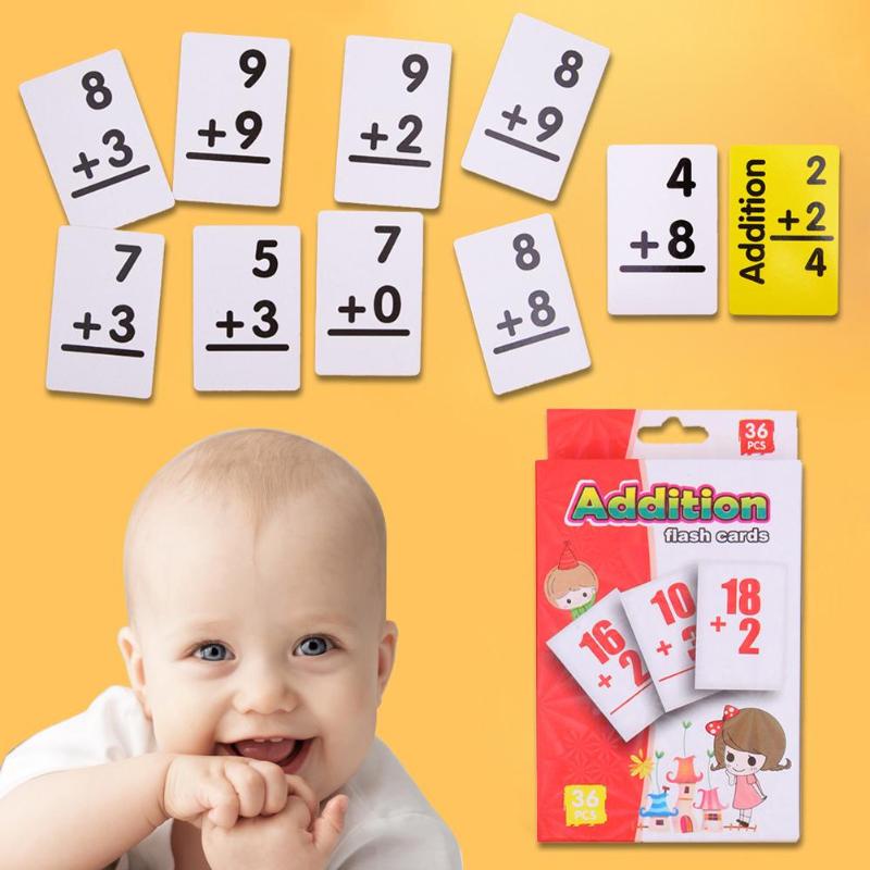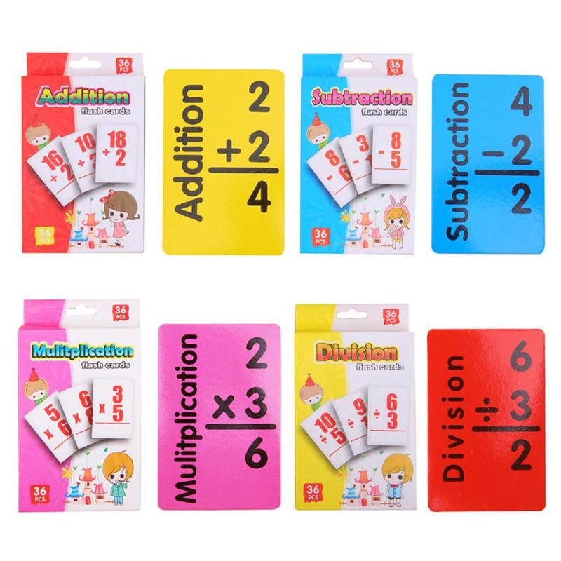 36 Pcs Kids Math Educational Flashcards Addition Subtraction Multiplication Division Flash Card Early Learning Pocket Cards For Preschool