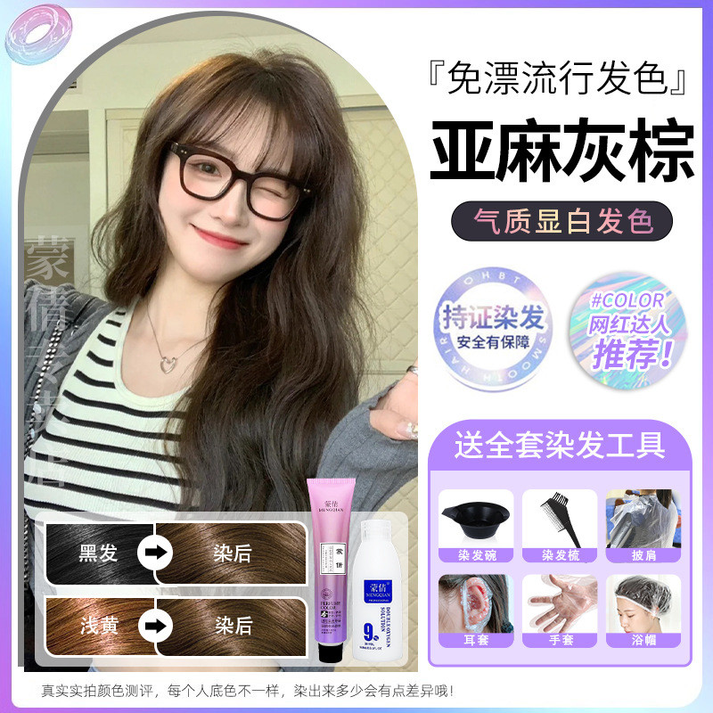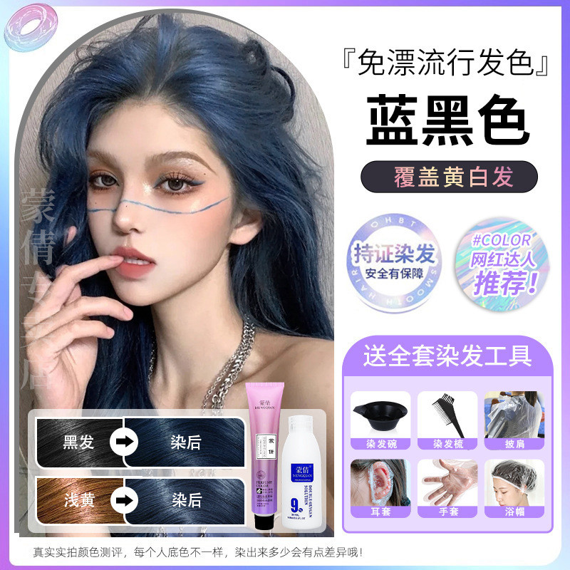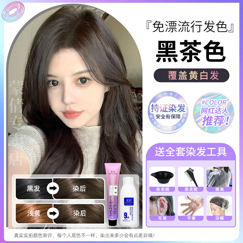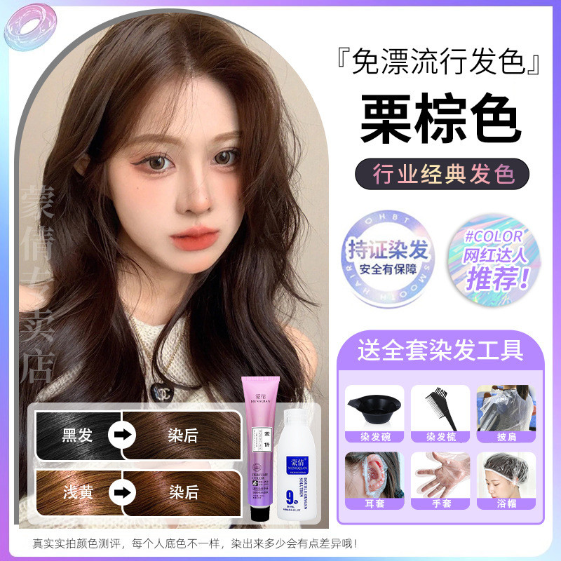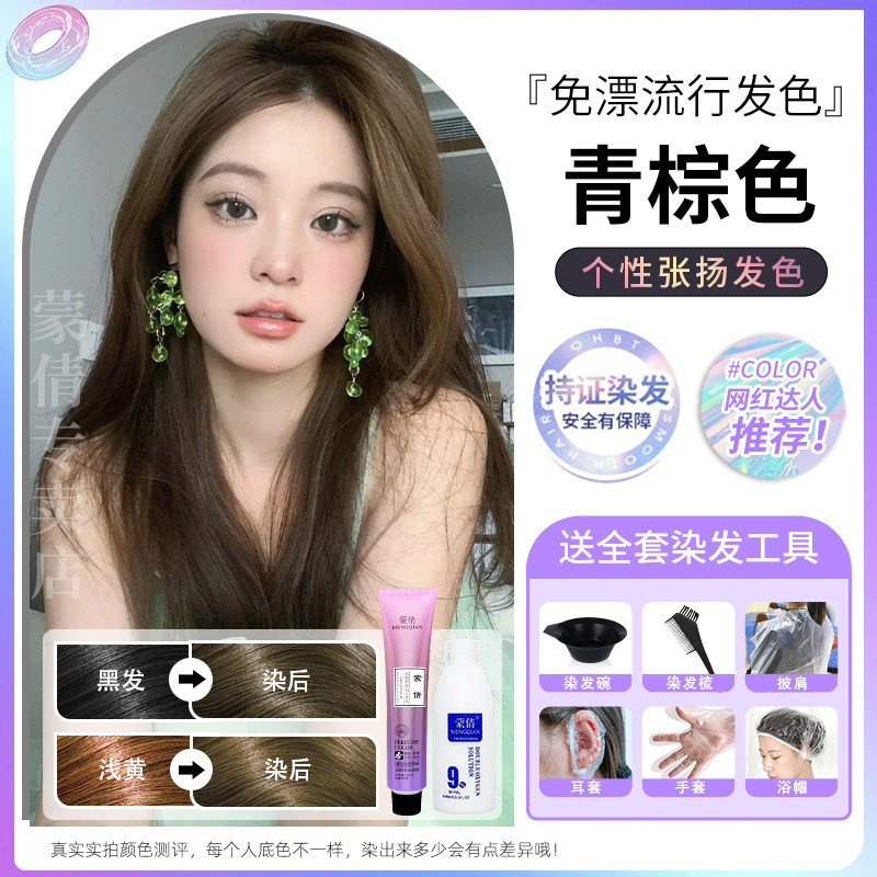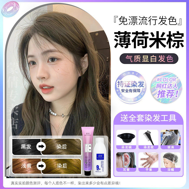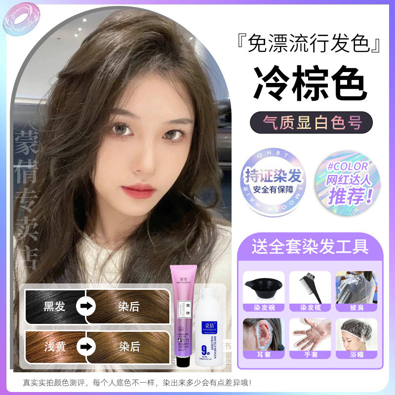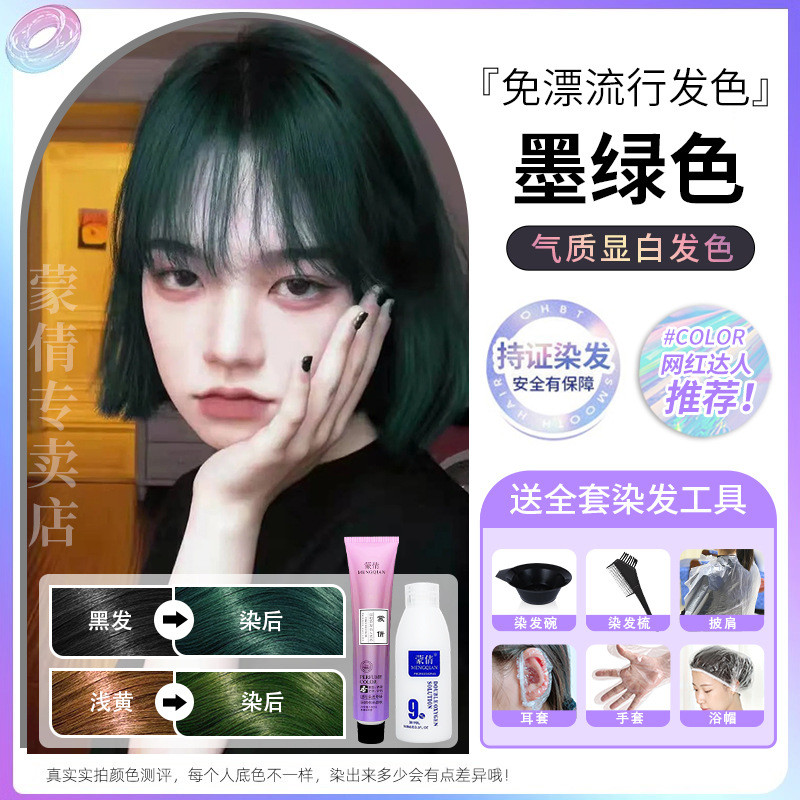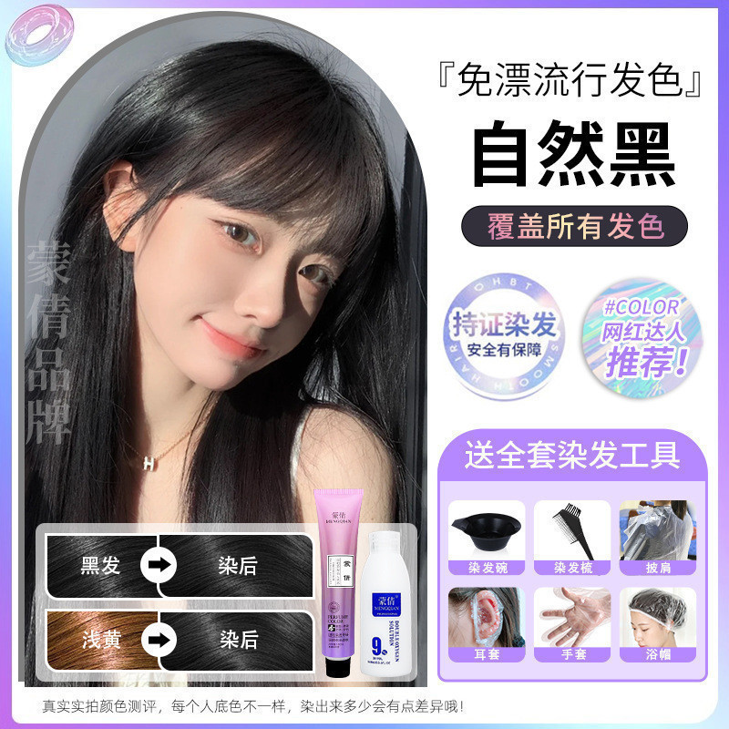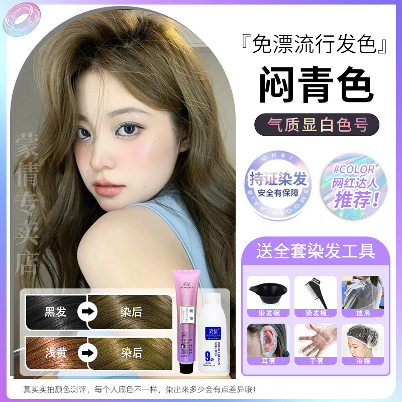 蒙倩免漂染发膏发廊理发店潮染盖白发染发剂自己在家染发整套工具Meng Qian hair cream hair salon hairdresser fashion dye