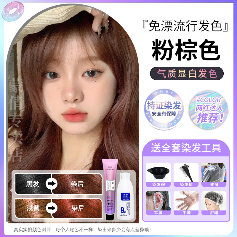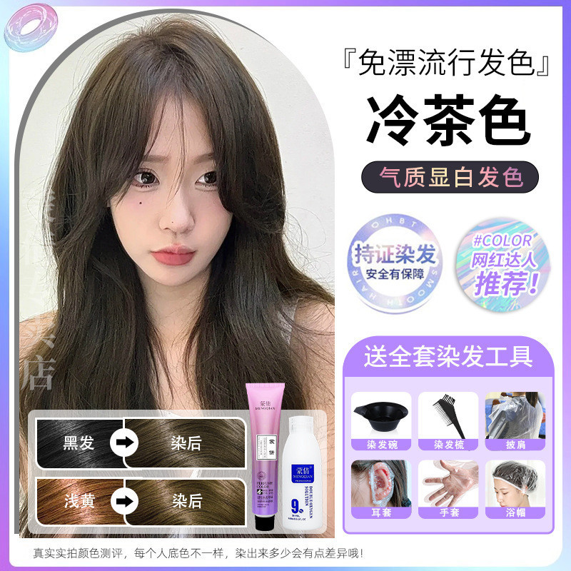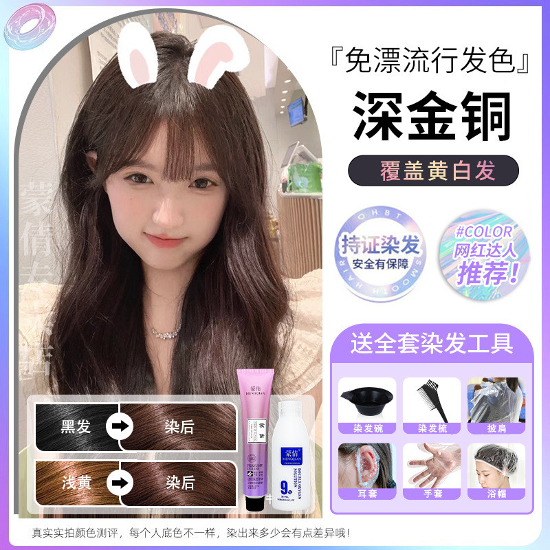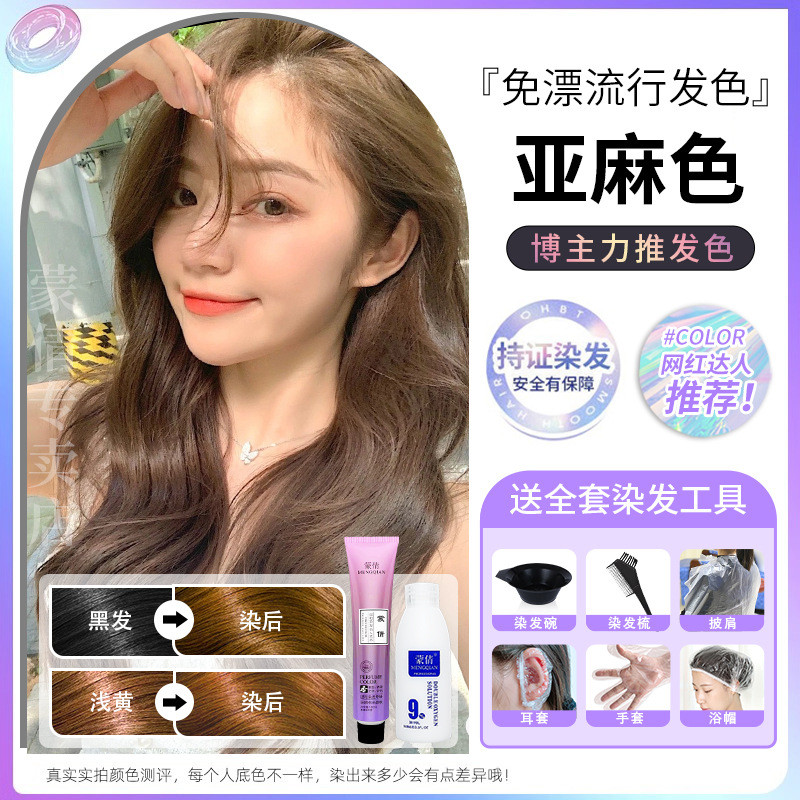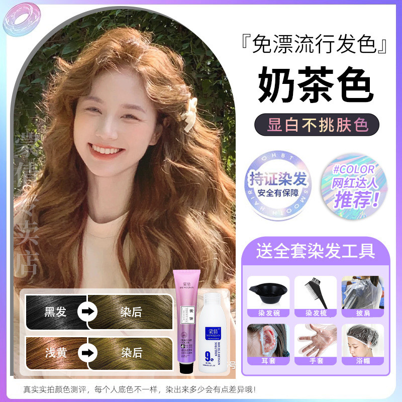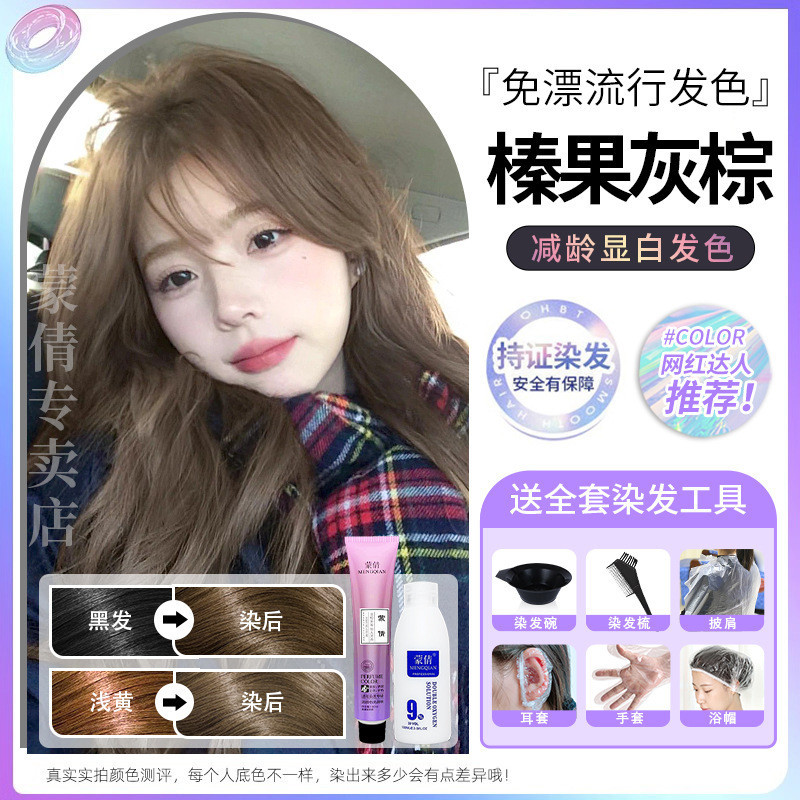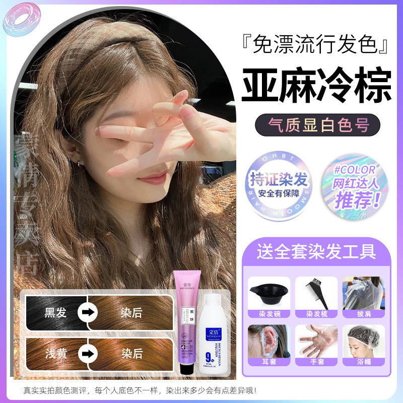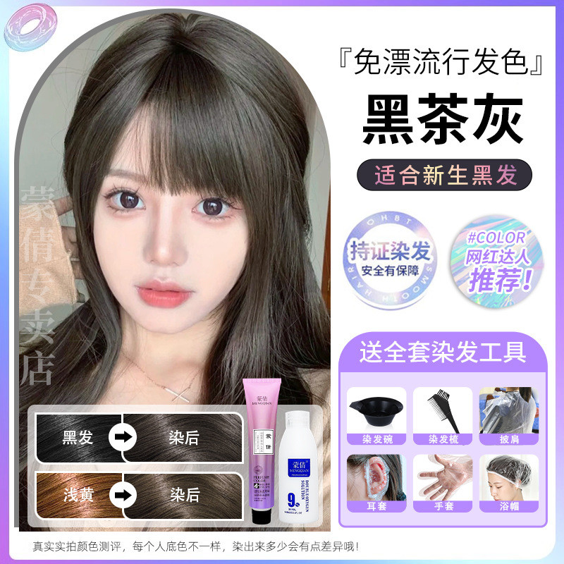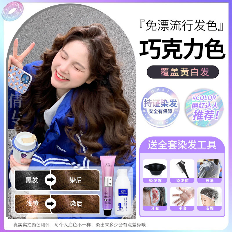 蒙倩免漂染发膏发廊理发店潮染盖白发染发剂自己在家染发整套工具Meng Qian hair cream hair salon hairdresser fashion dye