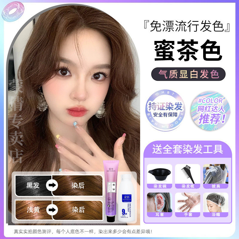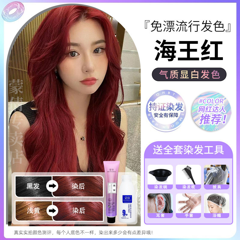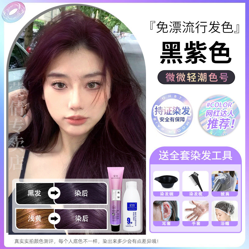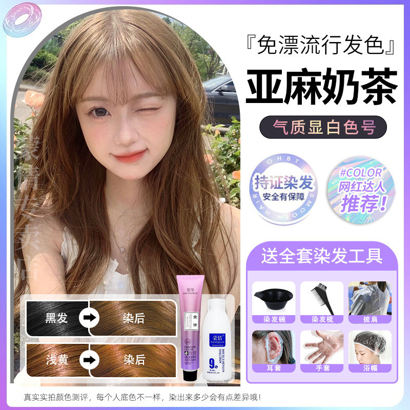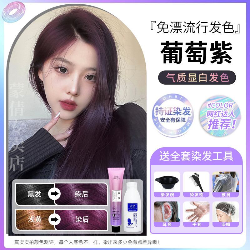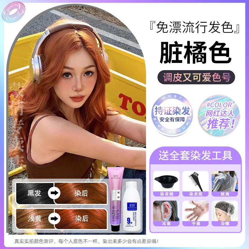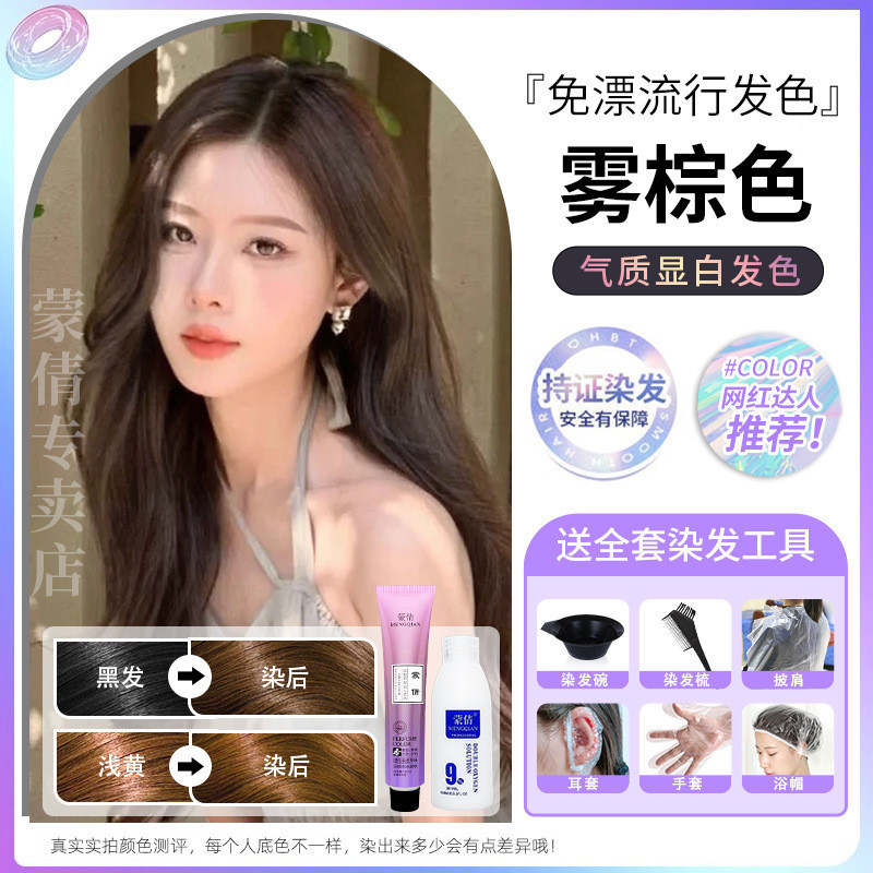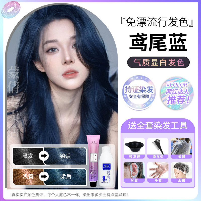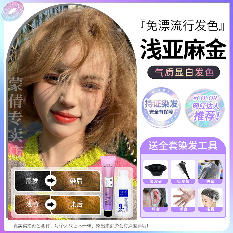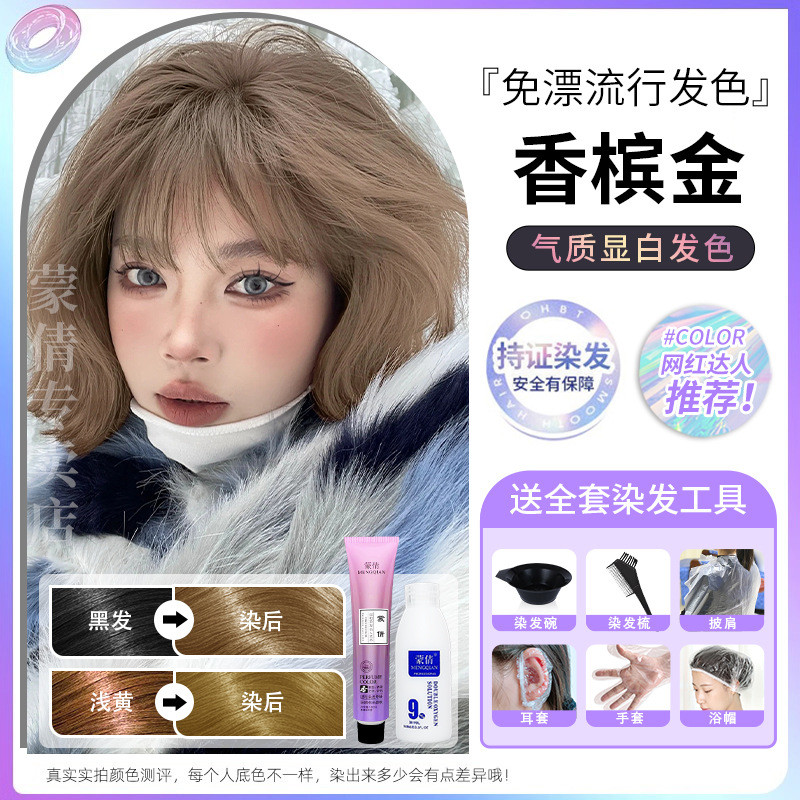 蒙倩免漂染发膏发廊理发店潮染盖白发染发剂自己在家染发整套工具Meng Qian hair cream hair salon hairdresser fashion dye
