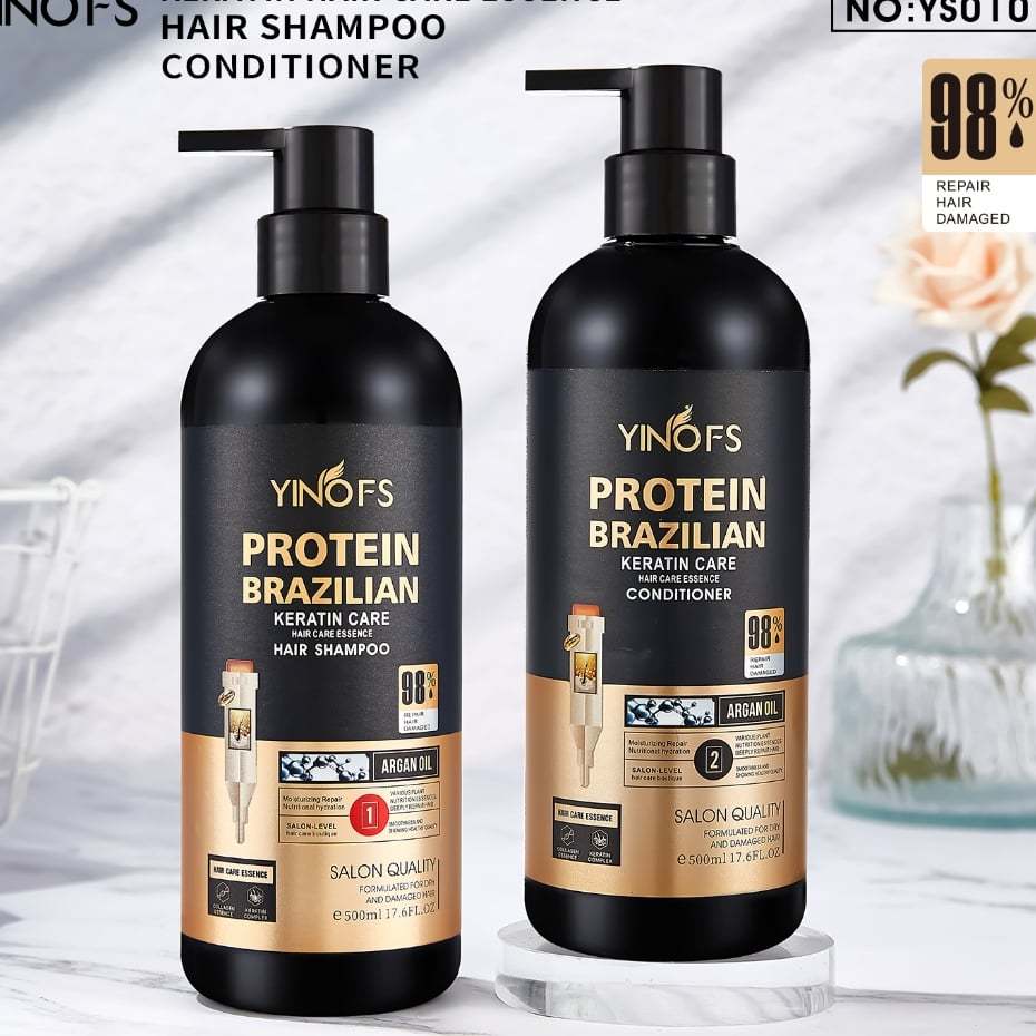 Buy 1 Get 1 YINOFS PROTEIN BRAZILIAN KERATIN REPAIR CARE HAIR SHAMPOO & CONDITIONER WITH ARGAN OIL