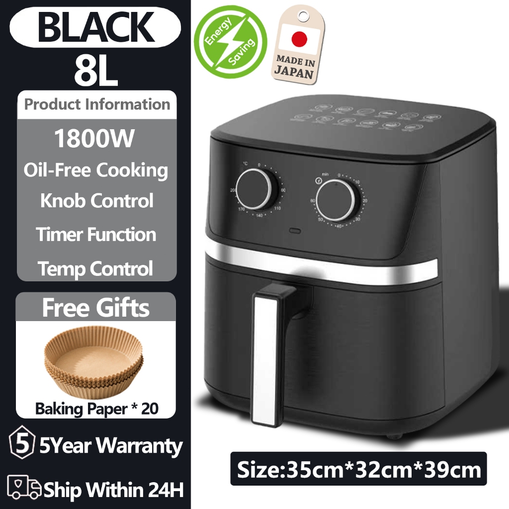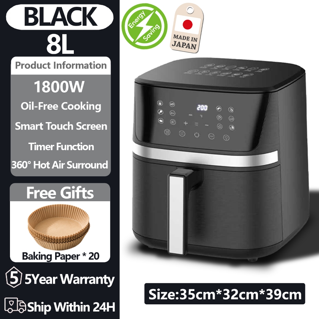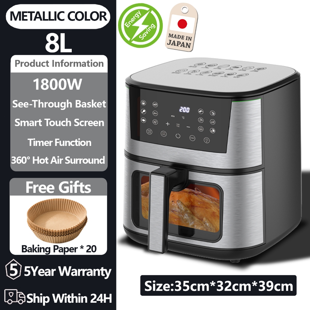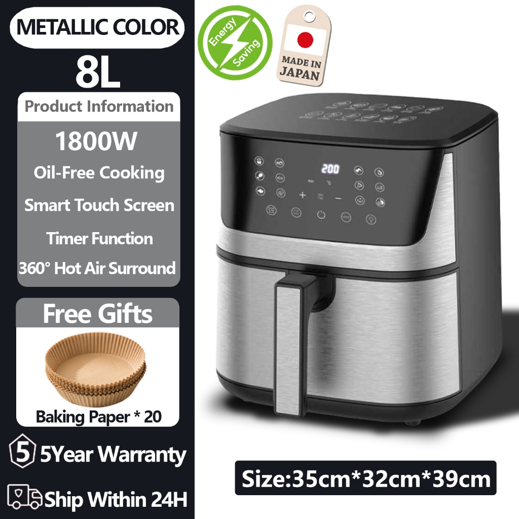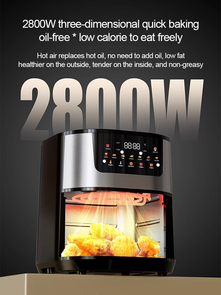 Tixx 2800W Air Fryer For Home 8L Capacity 12-Menu Digital Touch Oil Free Non-Stick Surface