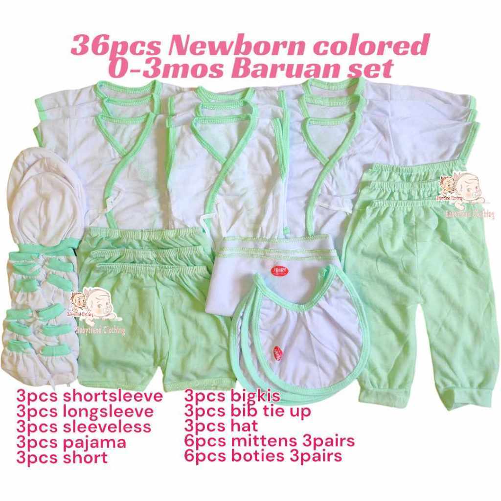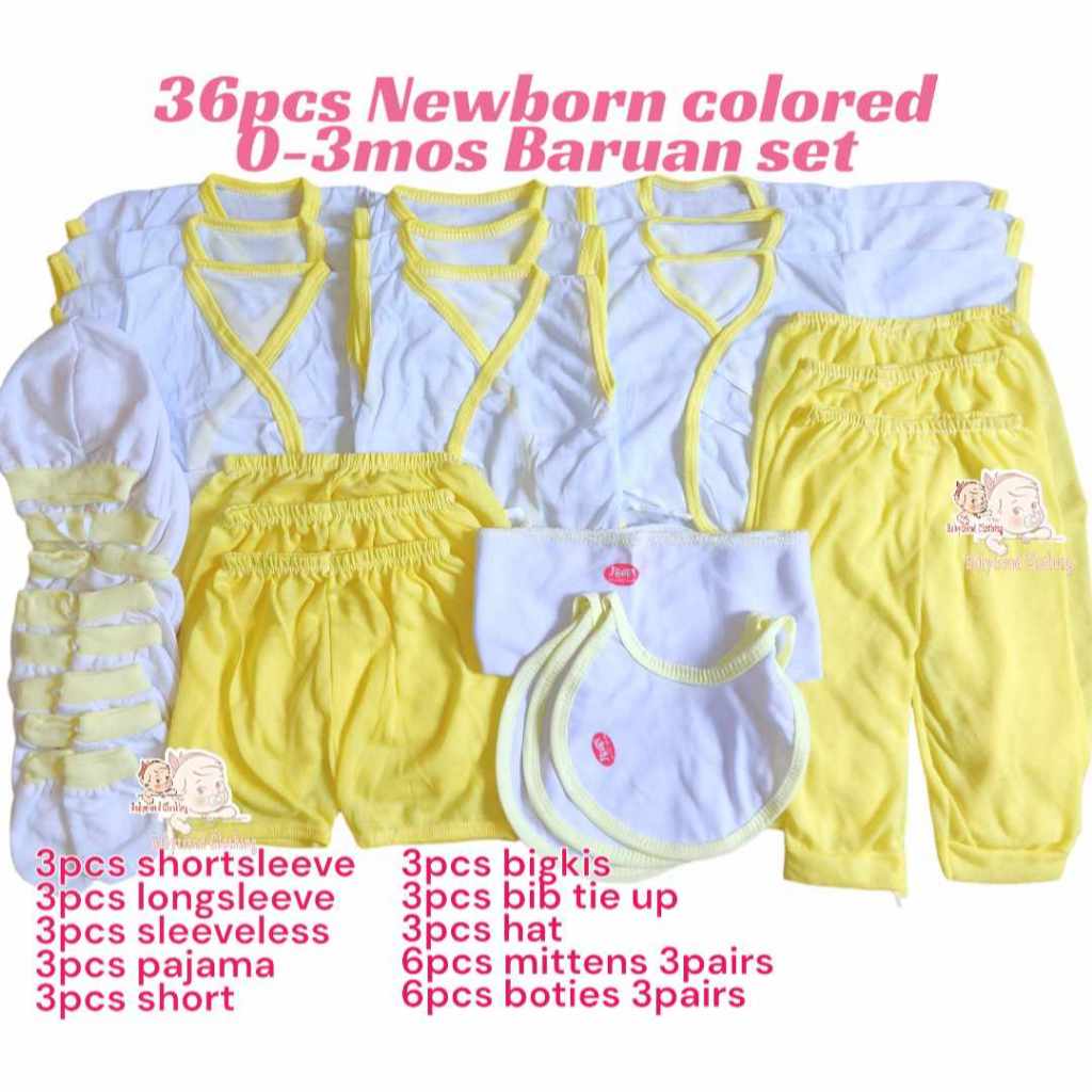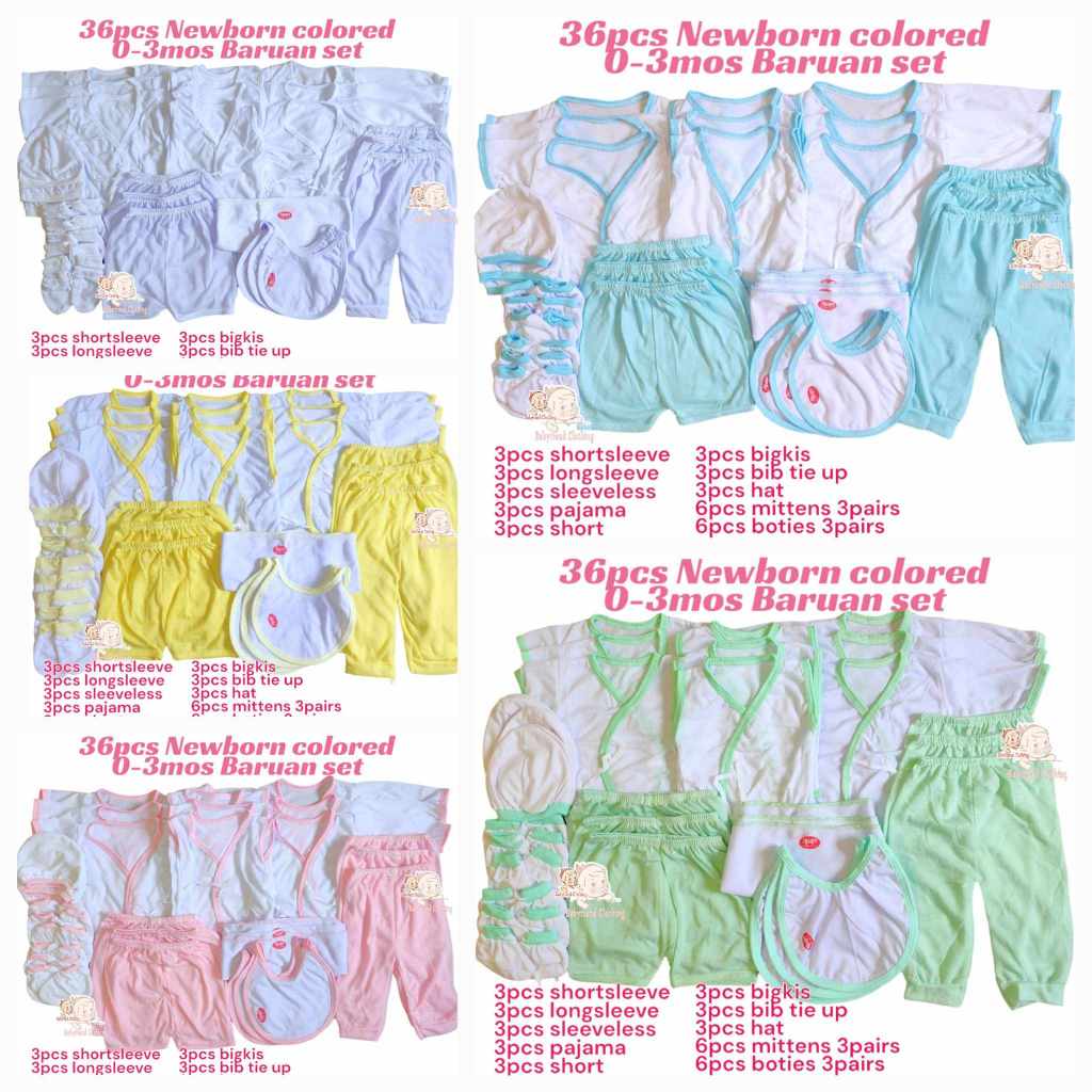 36 pcs NEWBORN COLORED ORDINARY COTTON BARU BARUAN TIE-SIDE SET