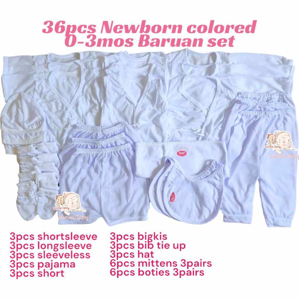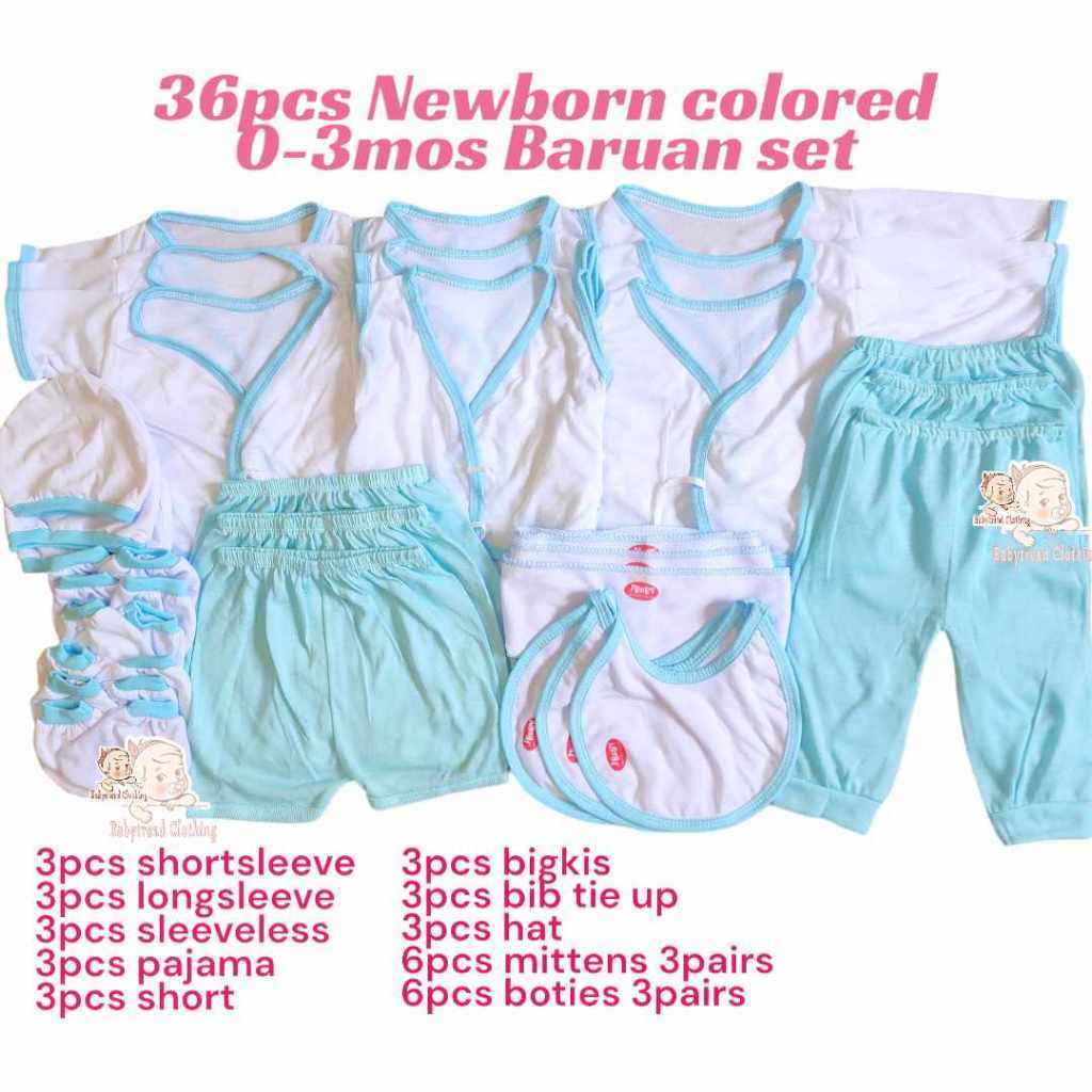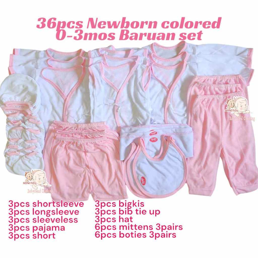 36 pcs NEWBORN COLORED ORDINARY COTTON BARU BARUAN TIE-SIDE SET
