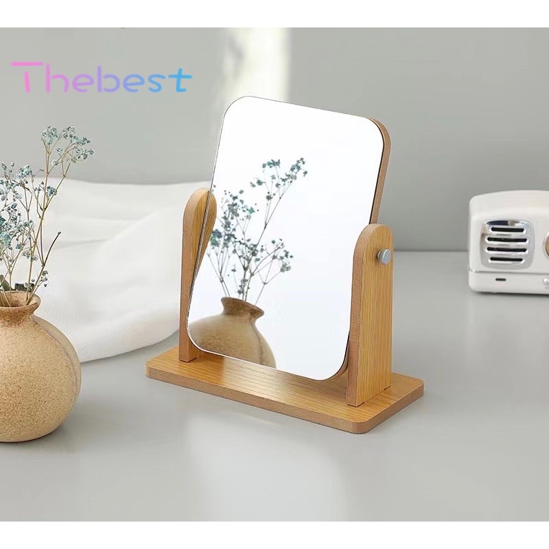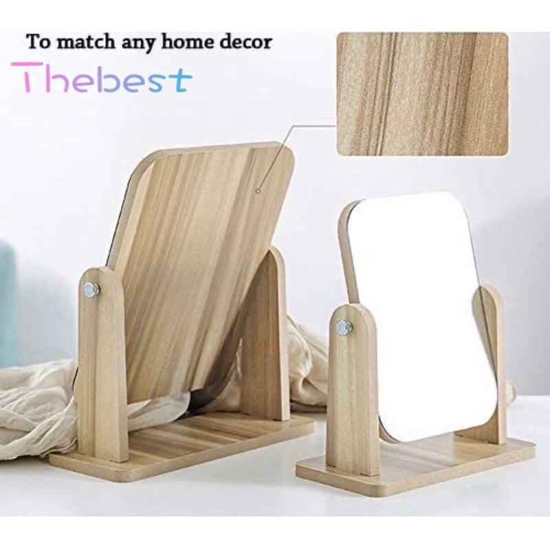 Wooden Mirror 360 Degree Portable Adjustable Table Desk Mirror Bathroom Living Room