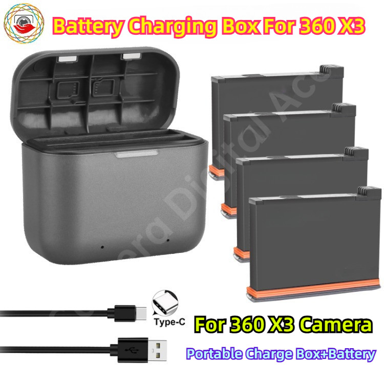 Battery + Quick Charger Box For 360 X3 Panoramic Action Camera For Insta360 X3 Battery