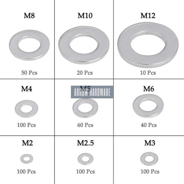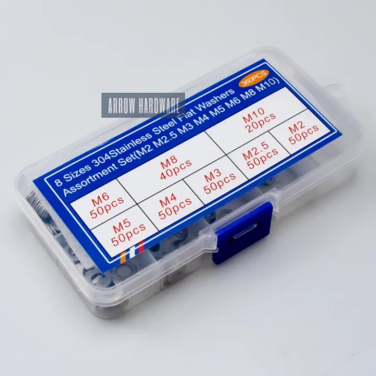 360pcs M2-M10 Stainless Steel Flat Washer Plain Washer Flat 304 Gasket Ring
