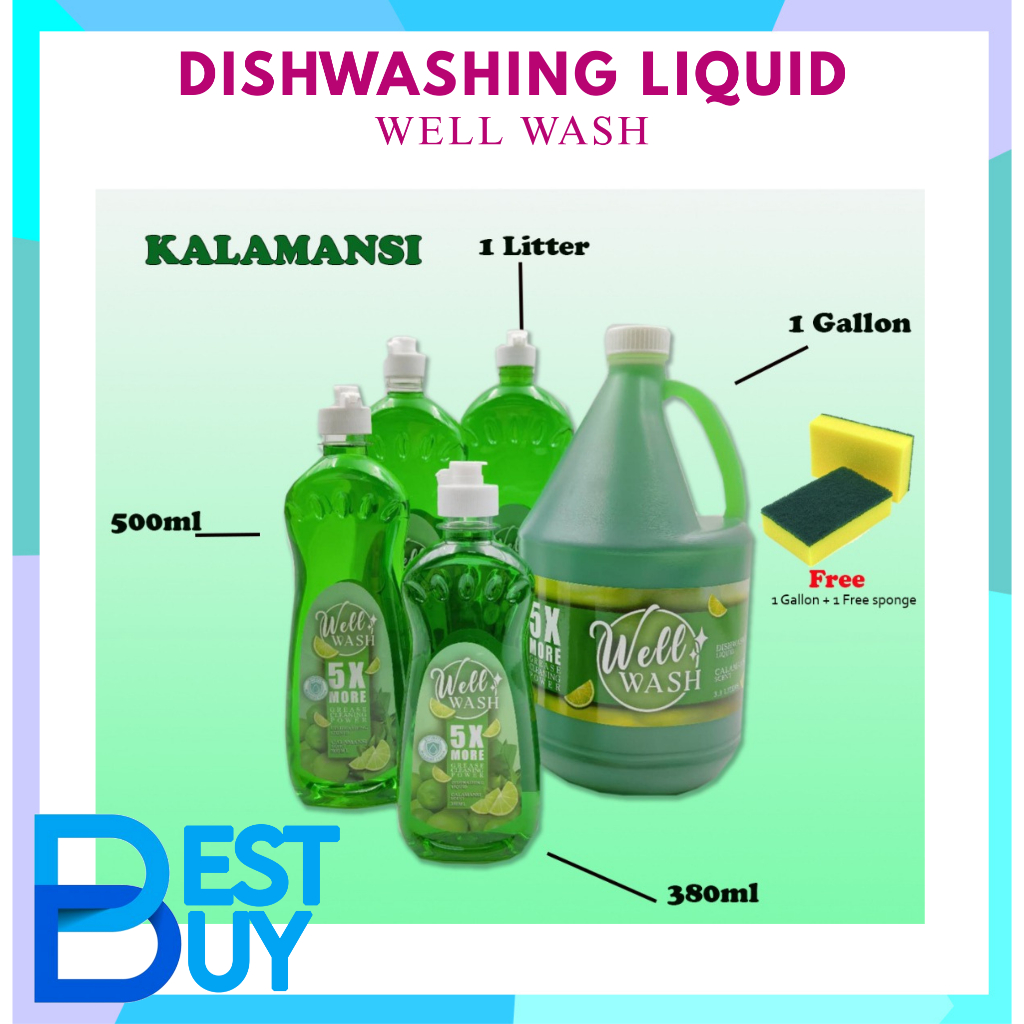380ML | 500ML | 1L WELL WASH DISHWASHING LIQUID KALAMANSI / LEMON / ODORLESS