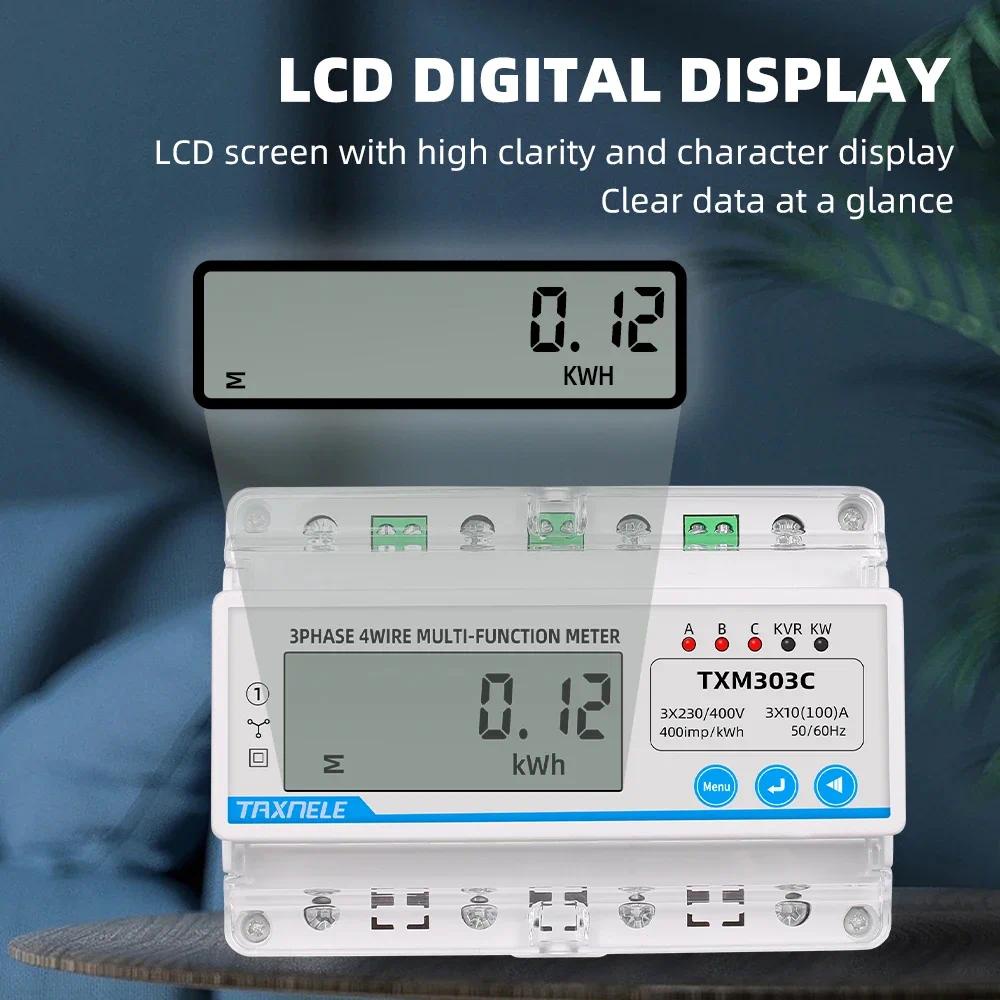 380V 3 Phase 4 Wire Electronic Watt Power Energy Meter Voltage Current Multifunction Wattmeter kWh 100A AC LCD Analog Counter
