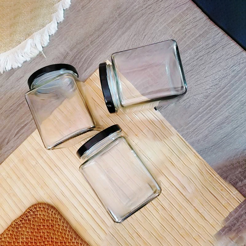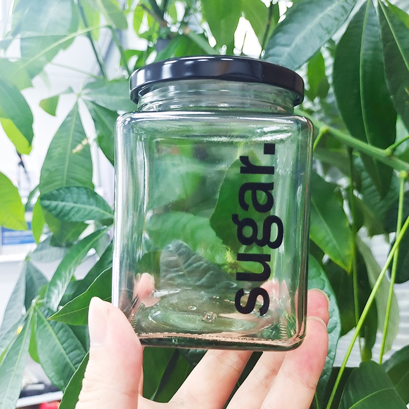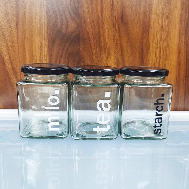 380ml 1 Set 3 Pieces Jar Glass Coffee Condiments Container With Black Label White Label