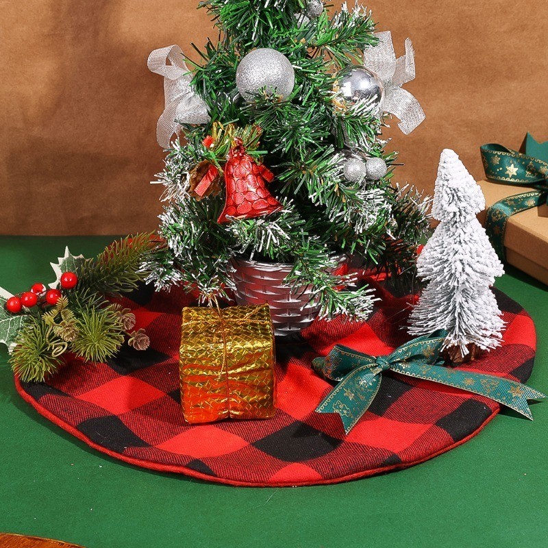 38cm Red Black Plaid Christmas Tree Foot Cover - DIY Mini Home Desktop Scene Arrangement Xmas Tree Bottom Decor Mat