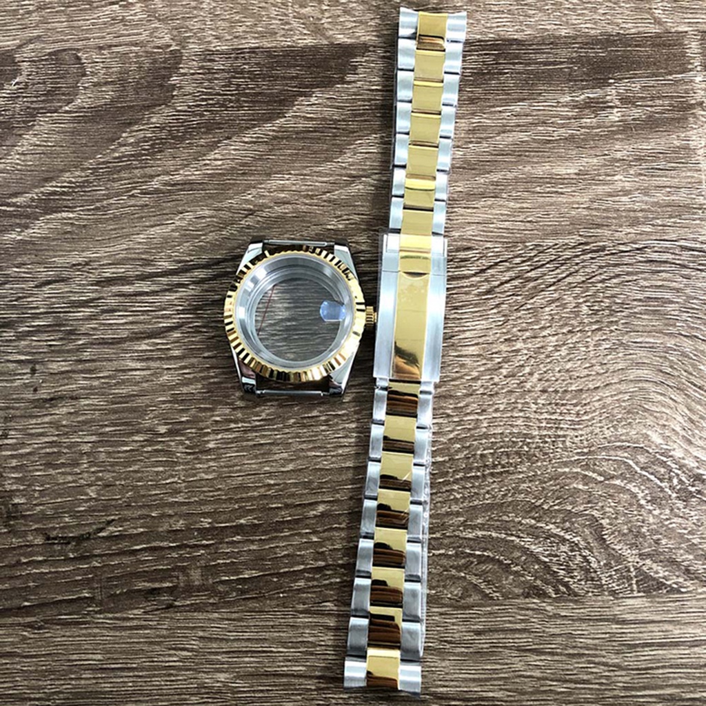 39mm Middle Gold Watch Case Stainless Steel Oyster Shaped Dog Tooth Ring Case Sapphire Glass Watch Accessories for NH35/36 Movement