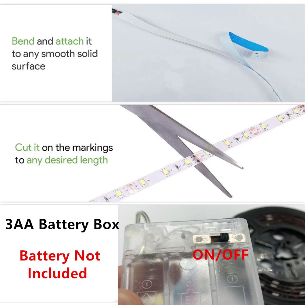 3AA Battery Powered LED Strip Light Portable Plug Free LED Strips White Red Green Blue Pink Yellow Ice Blue DIY Decoration Lamp for TV Background Mirror Fish Tank Model Cabinet