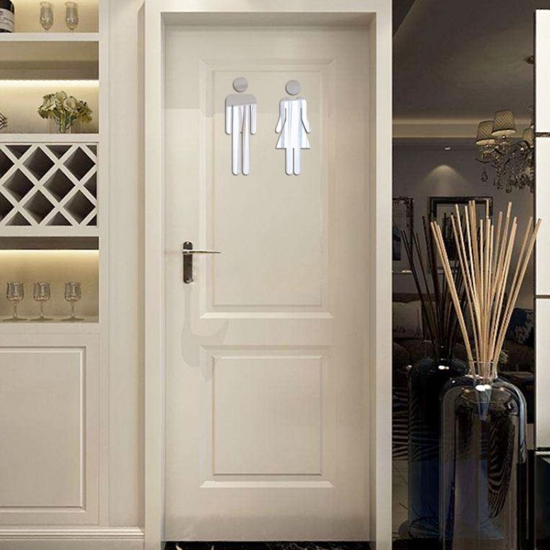 3D Acrylic Bathroom Mirror Stickers Toilet Sign MirrorHome Hotel Washroom Door Sign Mirror Sticker