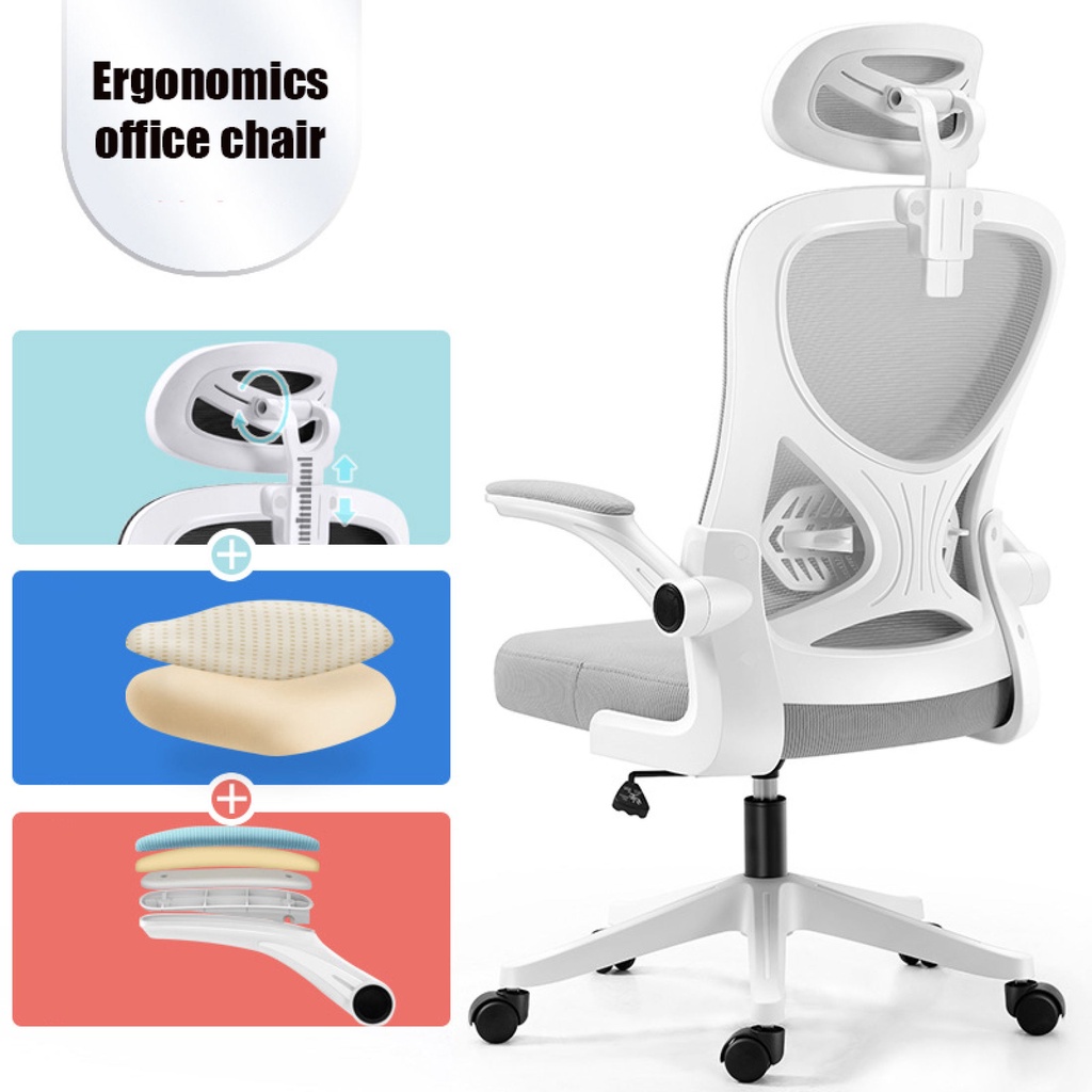 3D Adjustable Headrest&Armrest&Height Gray Ergonomics Office Chair Mesh Computer Chair Rotatable