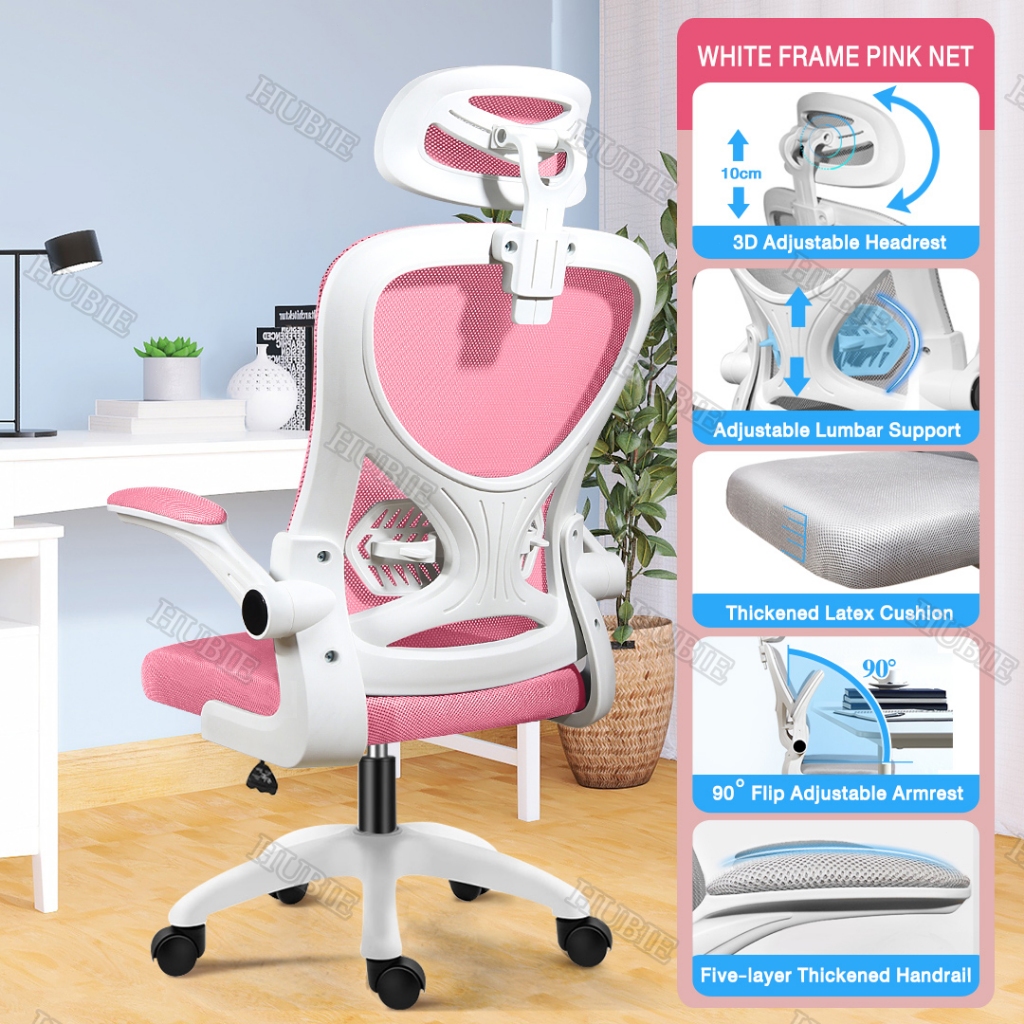 3D Adjustable Headrest Pink Computer Chair Ergonomic Chair Receptable Handrails Mesh Office Chair