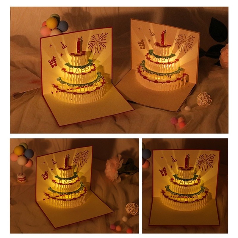 3D Birthday Card Cake Music Light Birthday Music 3D Greeting Card For Birthday Gift Party Gift