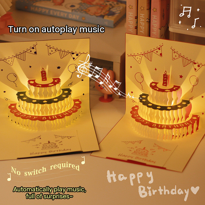 3D Birthday Card Cake Music Light Birthday Music 3D Greeting Card For Birthday Gift
