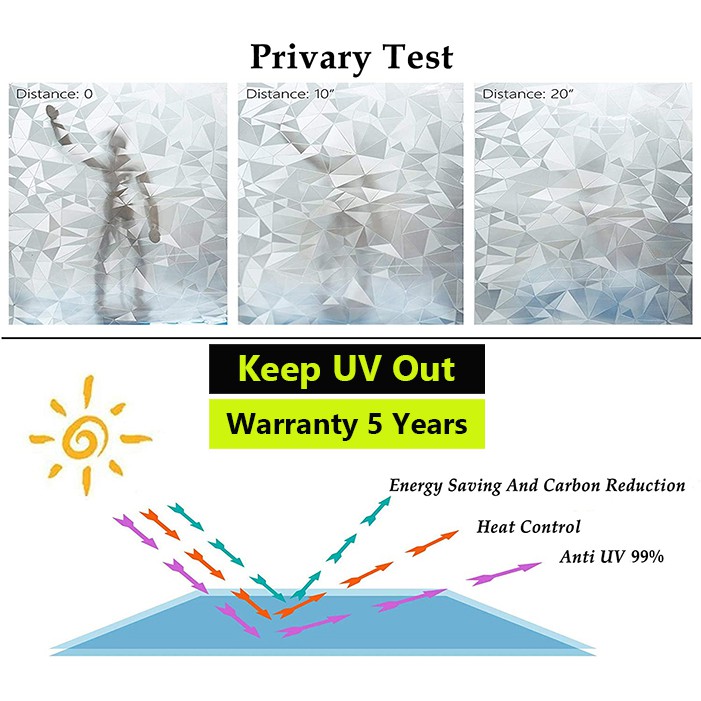 3D Diamond Privacy Window Film Stickers Decorative Window Glass Sticker Film Non Adhesive Sliding Door Sticker Film for Home Kitchen Office Anti UV Heat Control