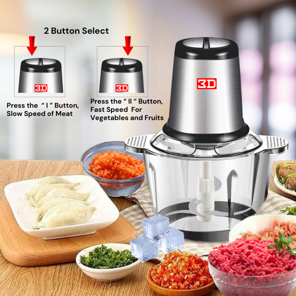 3D Electric Food Processor 1.8L Multifunctional Meat Grinder, Mixer, Chopper & Ice Crusher FC-300G