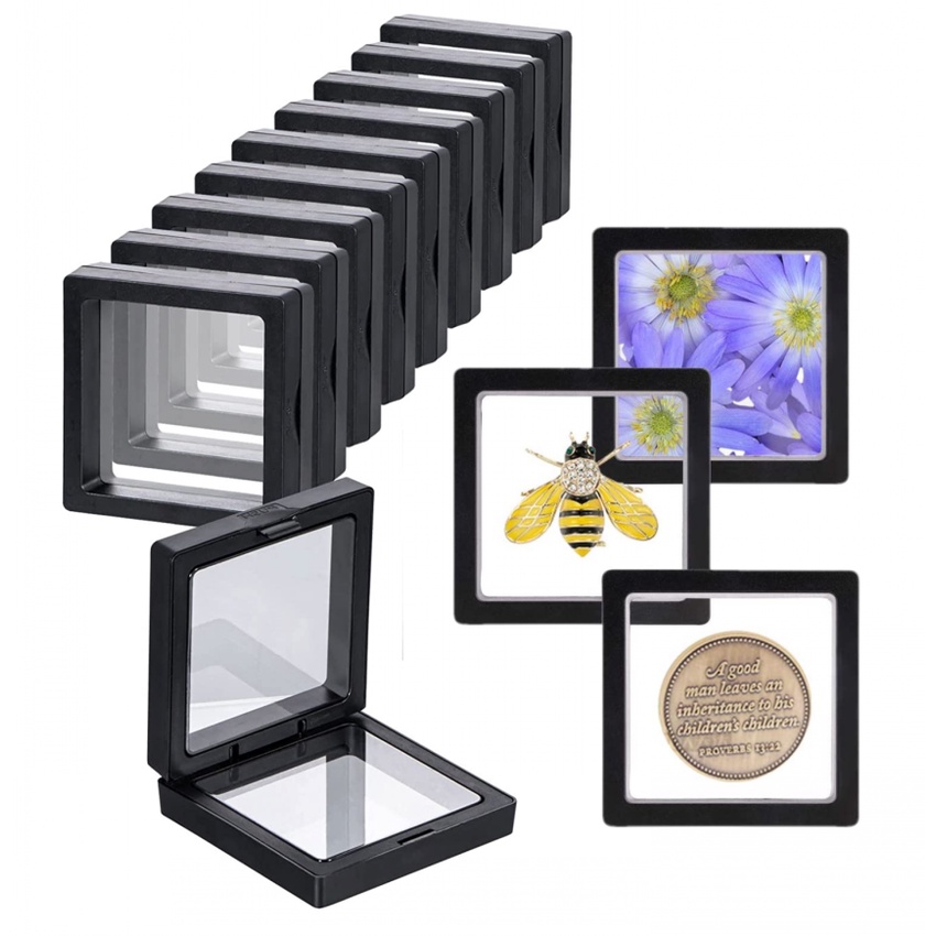 3D Floating Frame Display Holder Stands, EsLuker.ly Floating Display Case Transparent PE Jewelry Storage Box Suspension Frame for Challenge Coin AA Medallions Medal