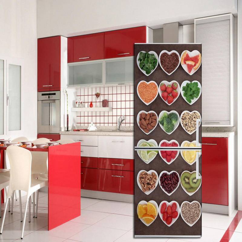 3D Fruit Vegetables Fridge Door Stickers Self Adhesive Refrigerator Freeze Sticker Art Fridge Door Cover Wallpaper Kitch