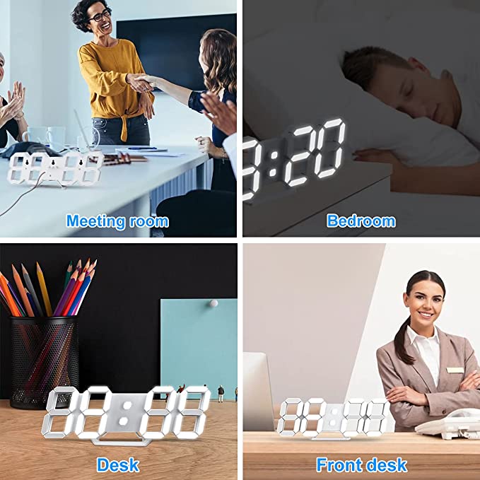 3D LED Wall Clock with Remote Control 15 Inch LED Clock Modern Wall Clock 12/24 Time/Date Temperature Display Alarm Clock Brightness Adjustable