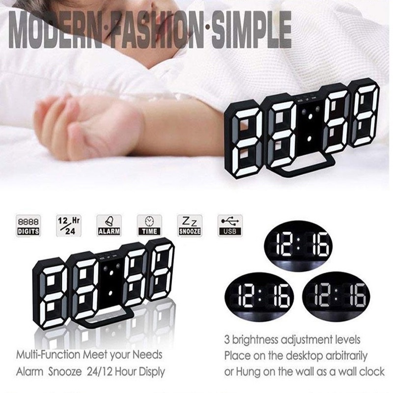 3D LED Wall clock Modern digital alarm clock display 12/24 hour display
