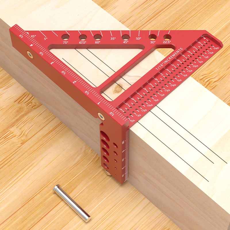 3D Multi-Angle Measuring Ruler Woodworking Hole Scribing Ruler Multifunctional Right Angle Aluminum Alloy Triangle Hole Measuring Tool With Extra Fine Point