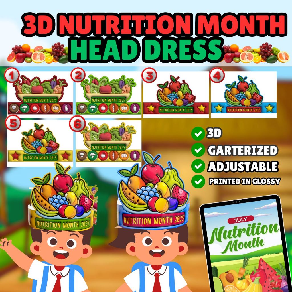 3D Nutrition Month Head Dress | Fruits and Vegetables Head Dress Garterized