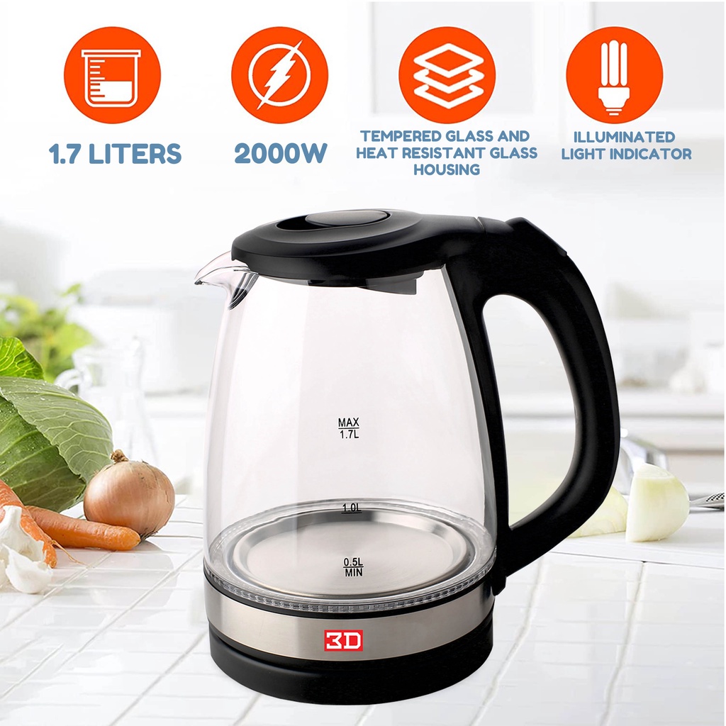 3D PK-17LGS Glass Electric Kettle 1.7L