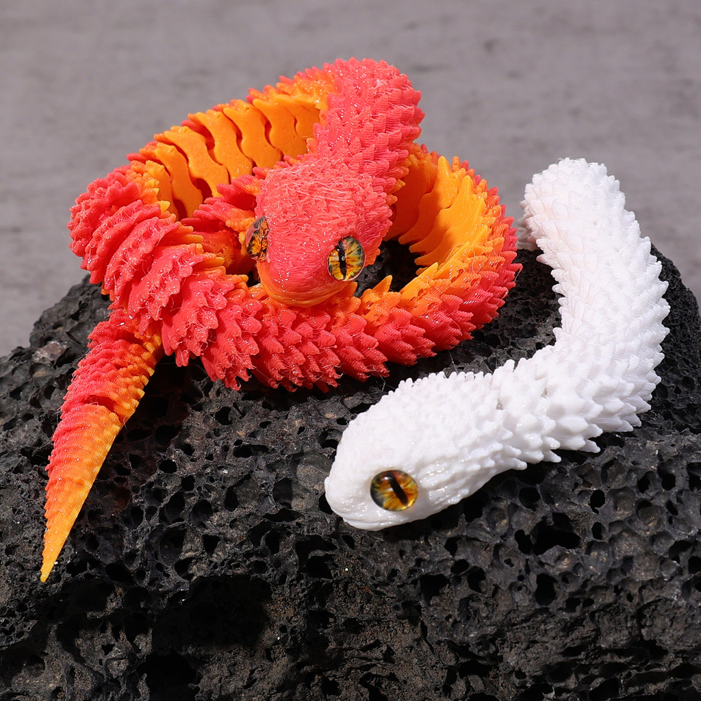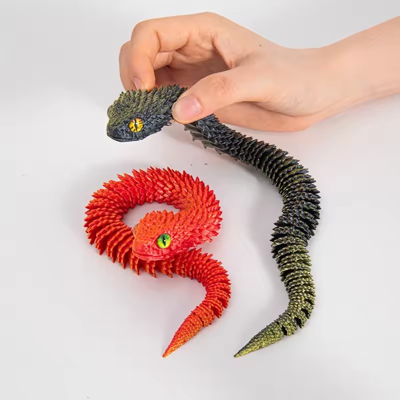 3D Printed Realistic Snake - Movable Joint Fidget Toy Figure - Office Desktop Ornament - Articulated Bush Viper Toy - Prank Gifts For Friends