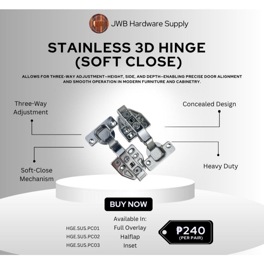 3D Stainless Concealed Hinges (Overlap, Half lap, Inset) SOLD PER PC