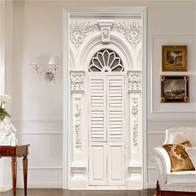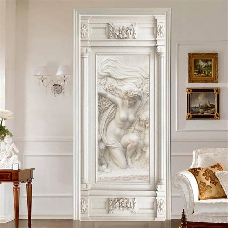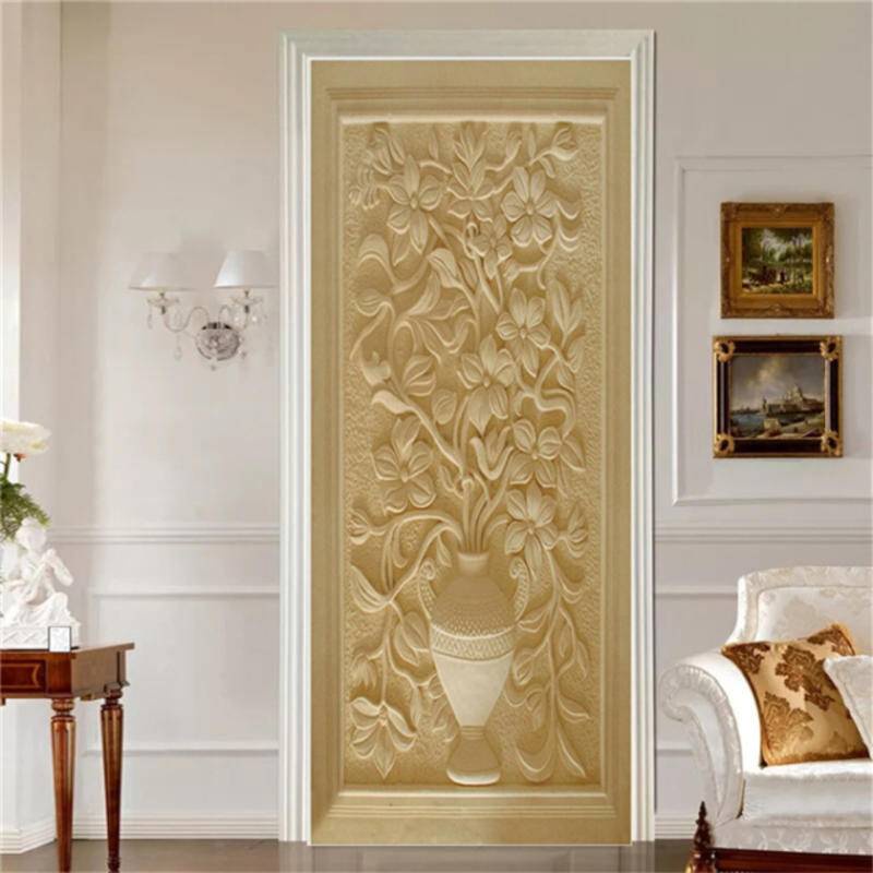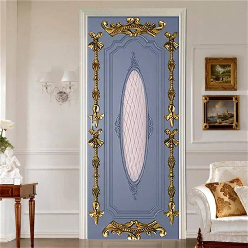 3D Wall Paper Door Sticker European Style Adhesive Wallpaper Corridor Bedroom Decoration Mural Vinyl Poster Decal For Home Decor